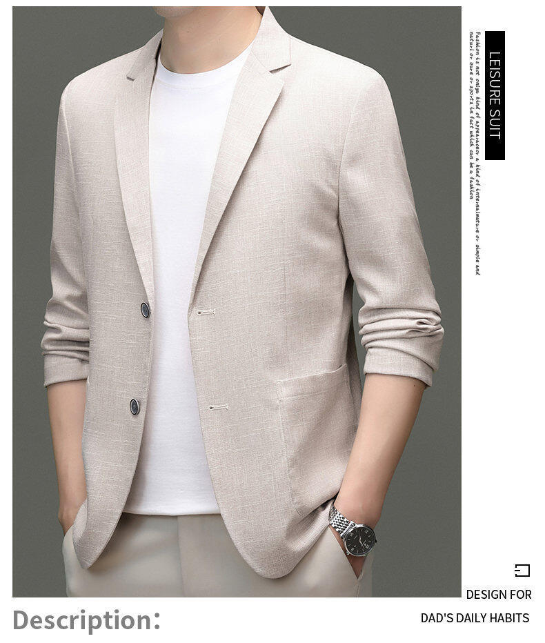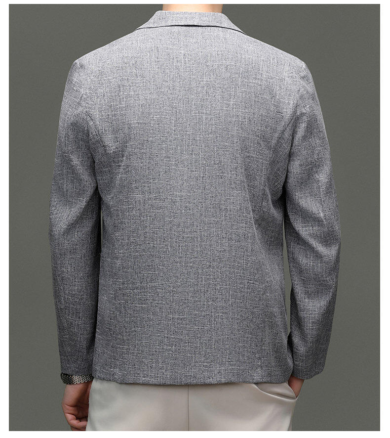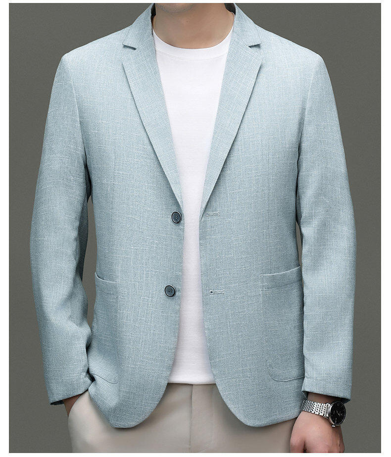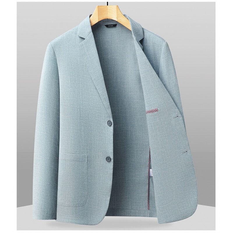 2025 여름 얇은 선 스크린 세트 재킷 남자 중년 탄성 작은 세트 새로운 아이스 실크 비즈니스 캐주얼 탑