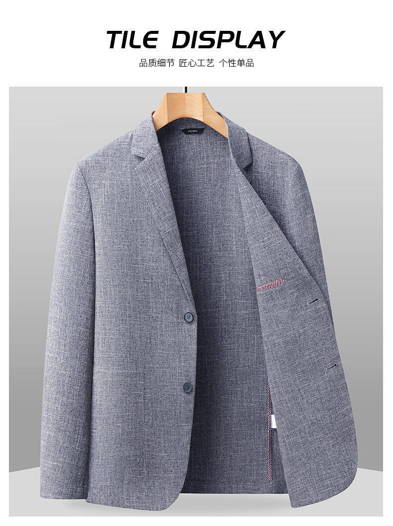 2025 여름 얇은 선 스크린 세트 재킷 남자 중년 탄성 작은 세트 새로운 아이스 실크 비즈니스 캐주얼 탑스토어 가기