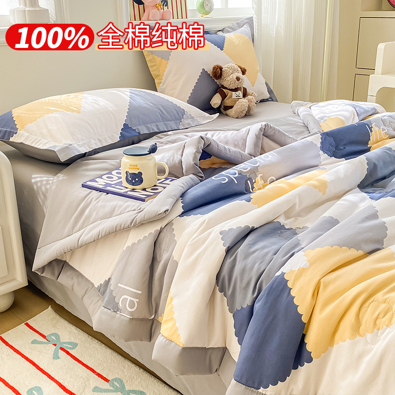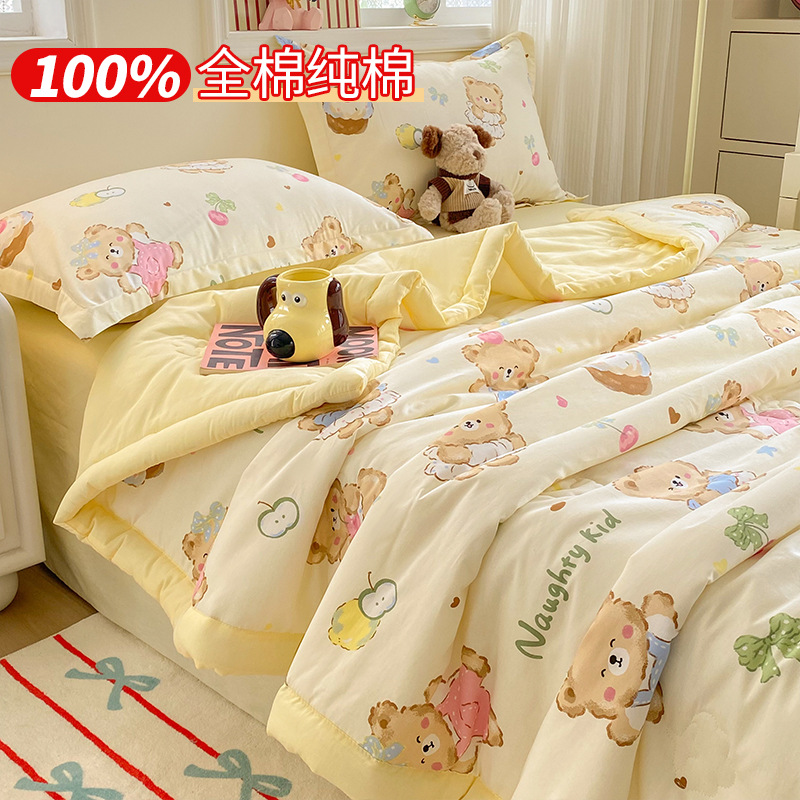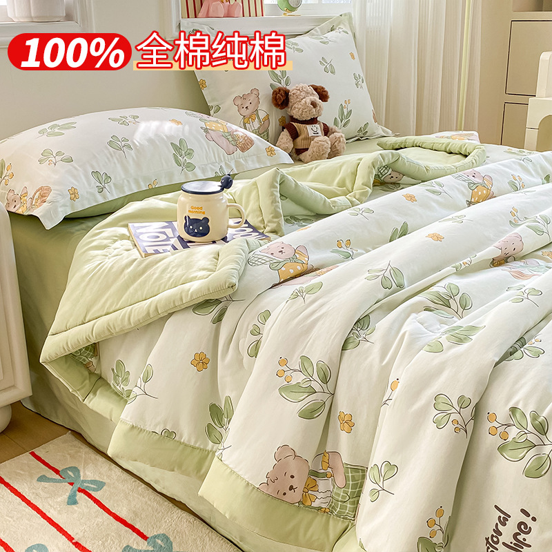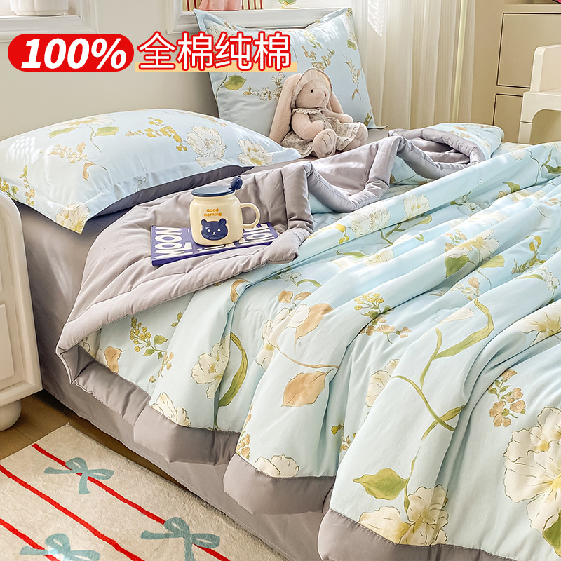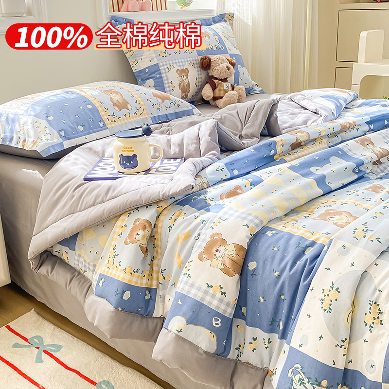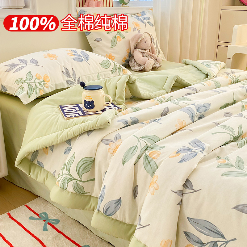 여름 시원한 이불 순수한 면화 기계 세탁기 1 인 여름 에어컨 퀼트 어린이 봄과 가을 사계절 유니버설 얇은 이불 코어스토어 가기