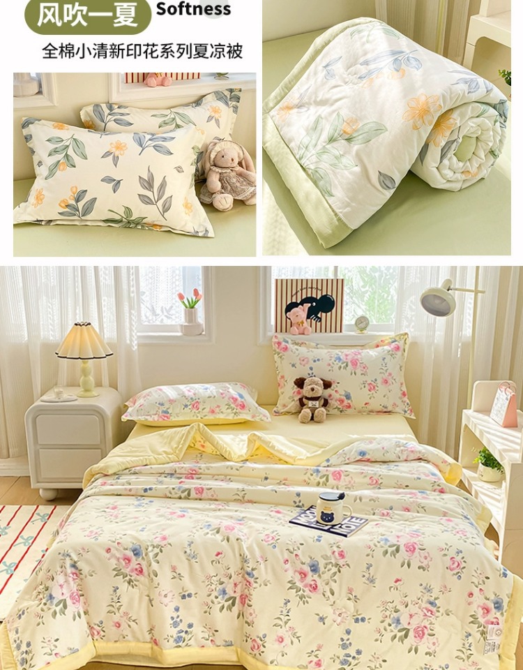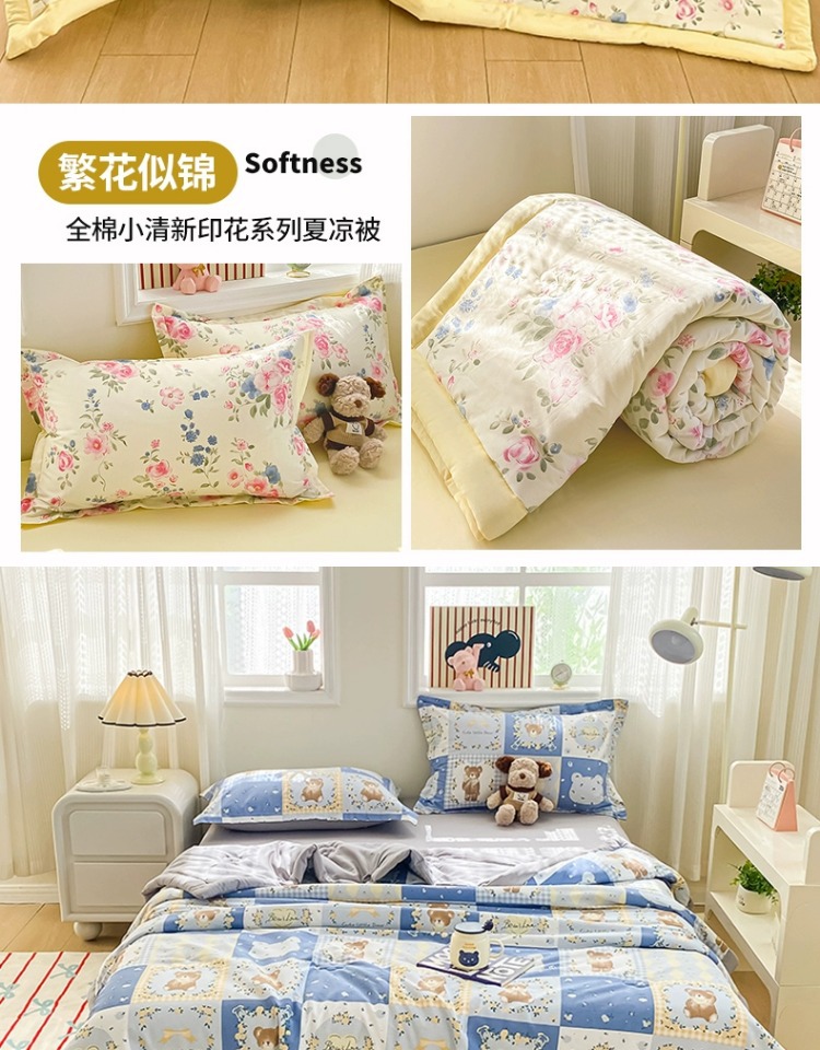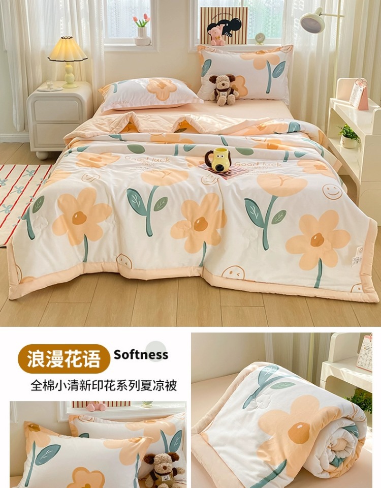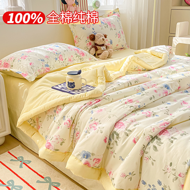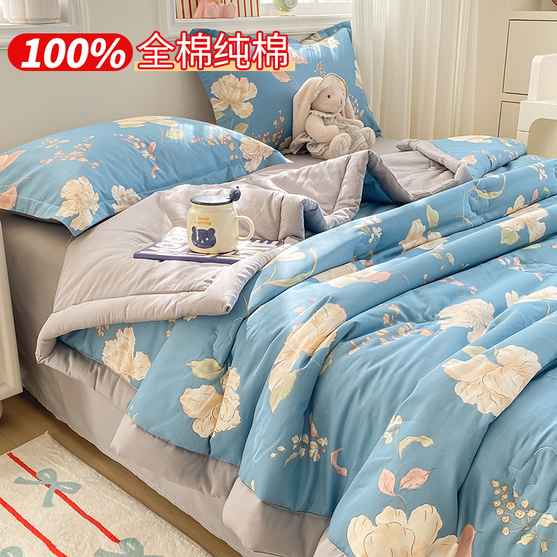 여름 시원한 이불 순수한 면화 기계 세탁기 1 인 여름 에어컨 퀼트 어린이 봄과 가을 사계절 유니버설 얇은 이불 코어스토어 가기