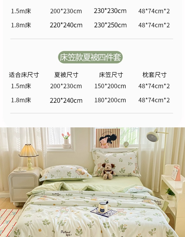 • 150X200cm 여름이불 4종세트 [여름이불+시트+베갯잇 한쌍]