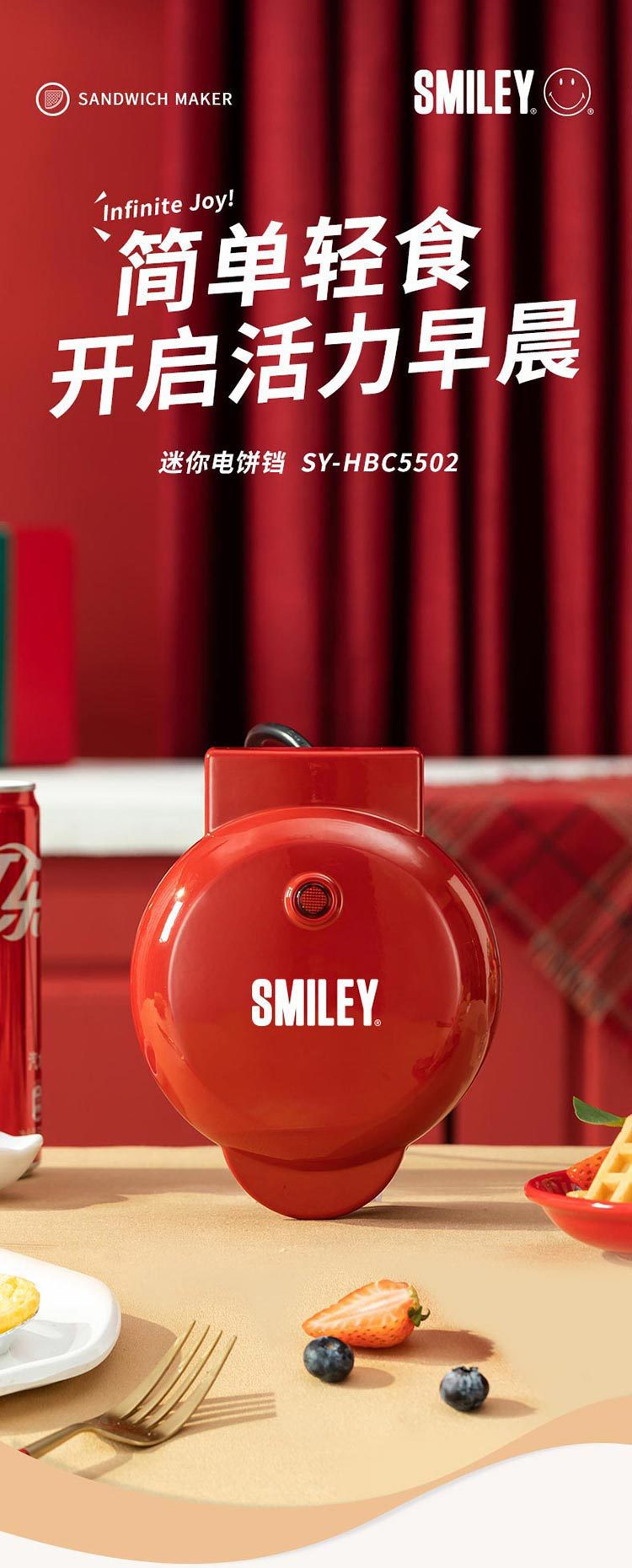 웃는 SY-HBC5502 미니 전기 케이크 팬 가구 튀김 베이킹 기계 팬케이크 냄비 Sanming 기계 조식 기계