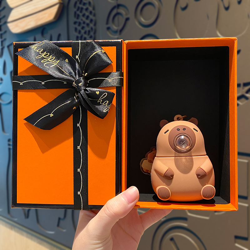 • 카피발라가 비눗방울을 불고 있어요 - 카키(대형) + 오렌지색 선물박스