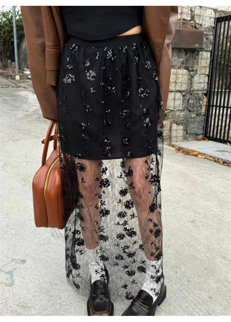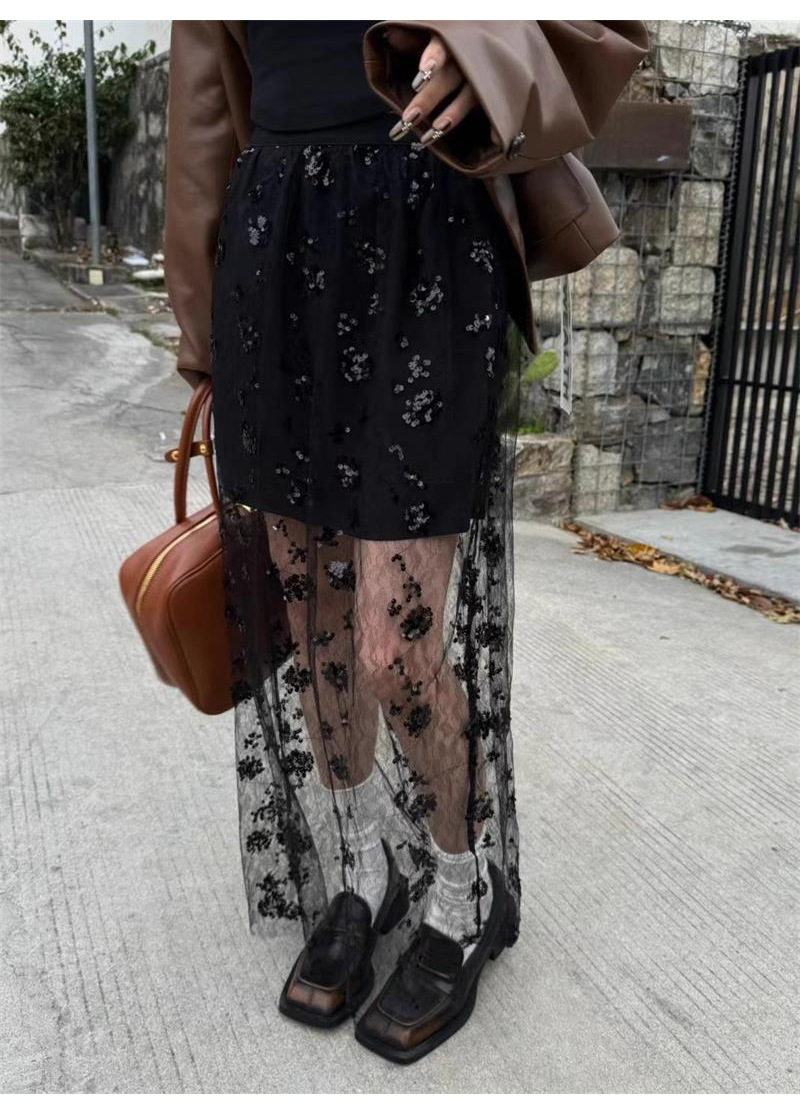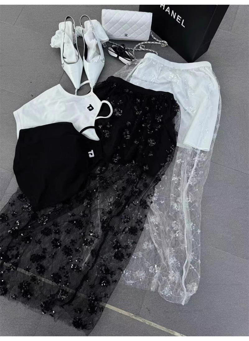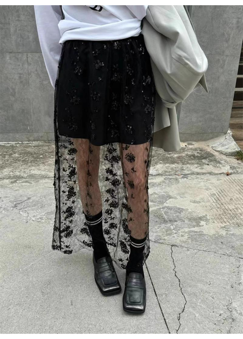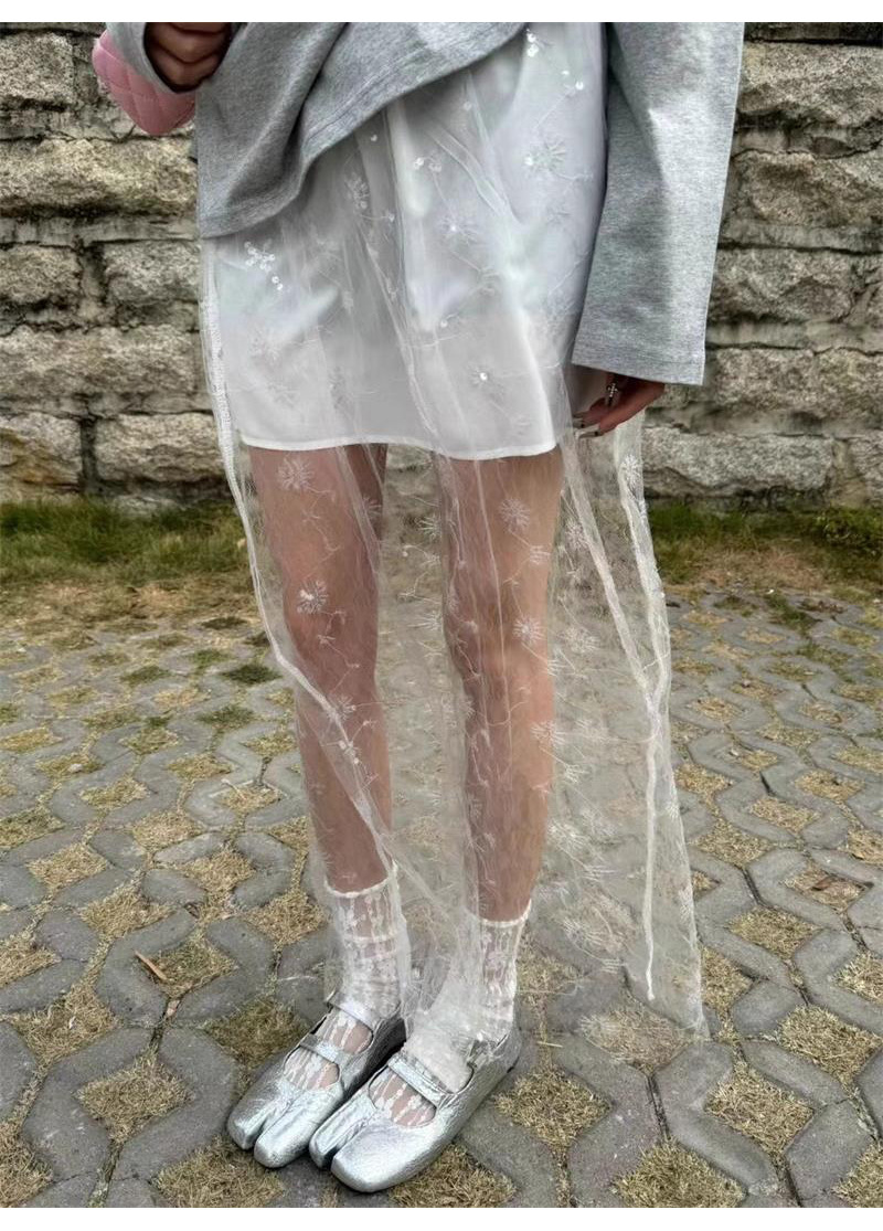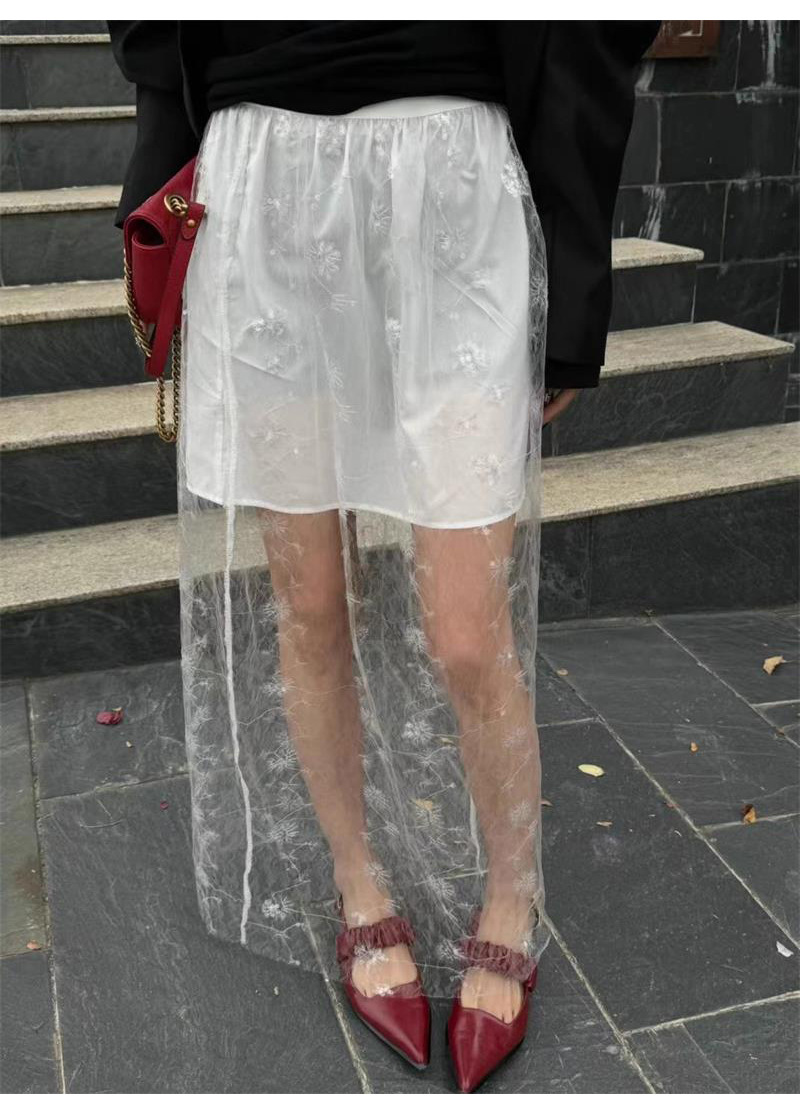 봄 2025 새로운 디자인 센스 가짜 두 조각 허리 슬림 메쉬 속옷스토어 가기