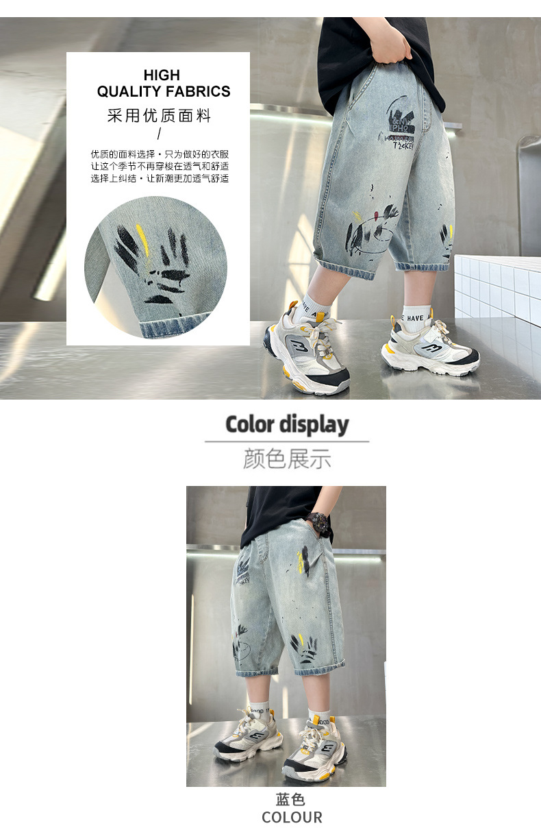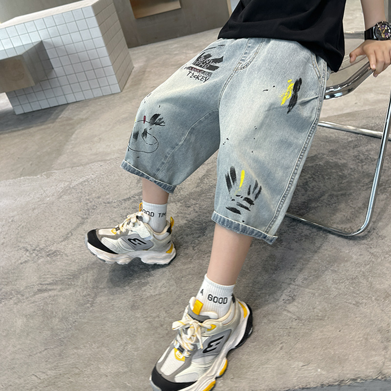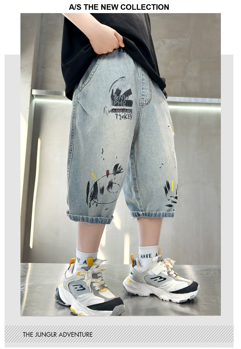 아동복 소년 반바지 2025 년 여름 새로운 어린이 얇은 여름 바지 큰 소년 캐주얼 데님 트렌디스토어 가기