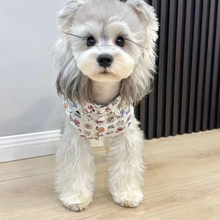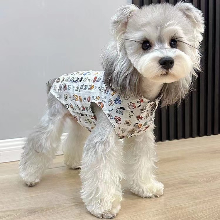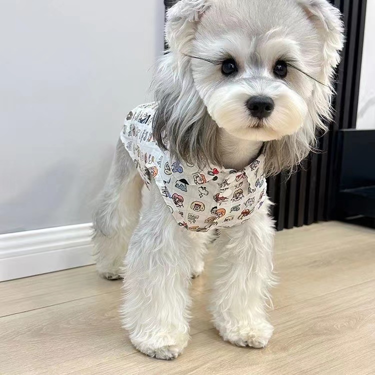 Schnery 옷 테디 비터 곰 개 얇은 셔츠 만화 머리 민소매 셔츠 개 고양이 옷스토어 가기