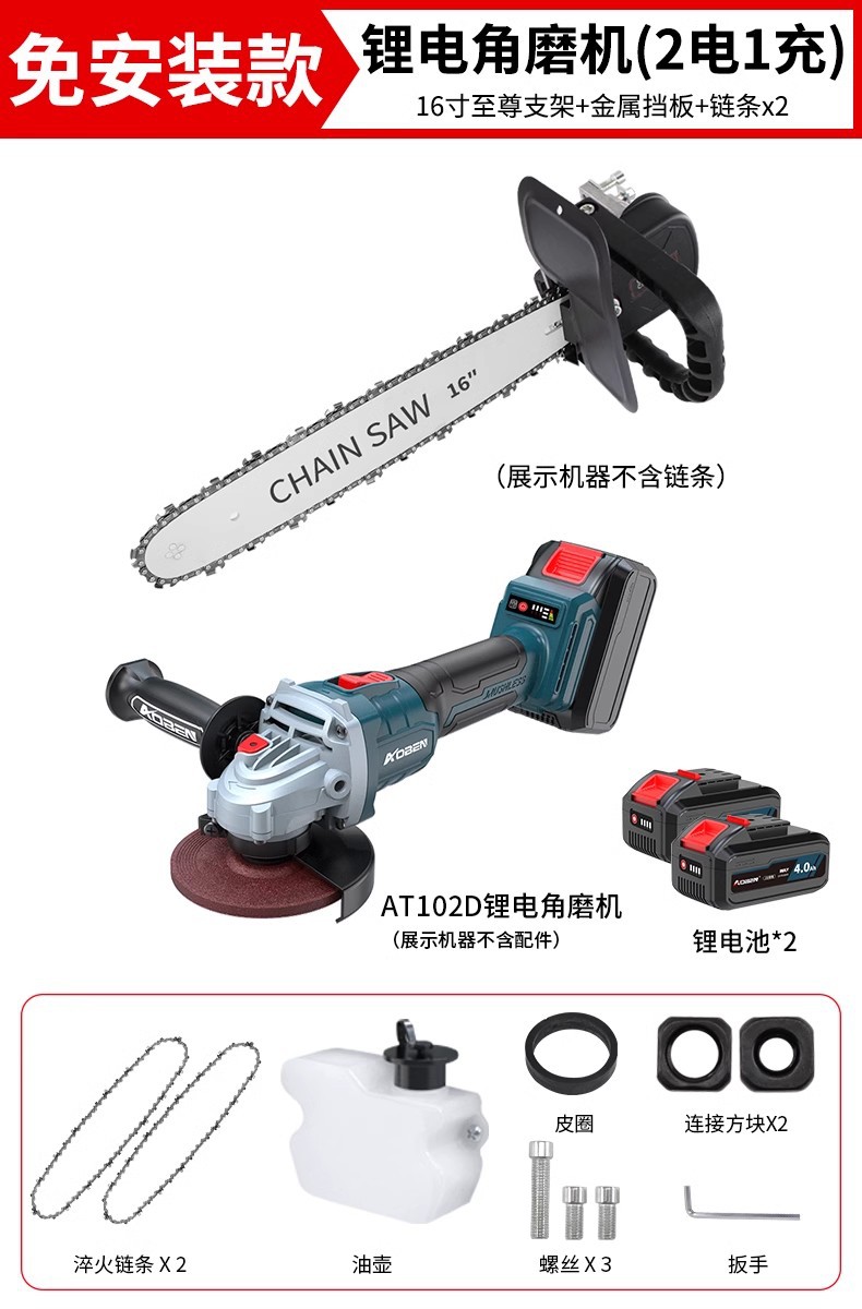 • ✅[설치가 필요 없는 16inch 럭셔리 모델] + 체인 2 + 리튬 배터리 앵글 그라인더 AT102D (배터리 2개, 충전 1개)