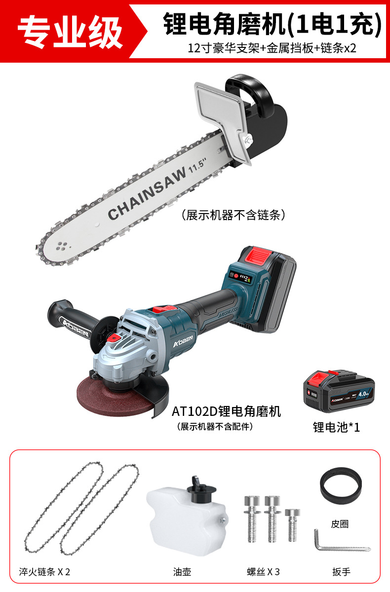• [12inch 전문가급] + 체인 2 + 리튬 전기 앵글 그라인더 AT102D (배터리 1개, 충전 1개)