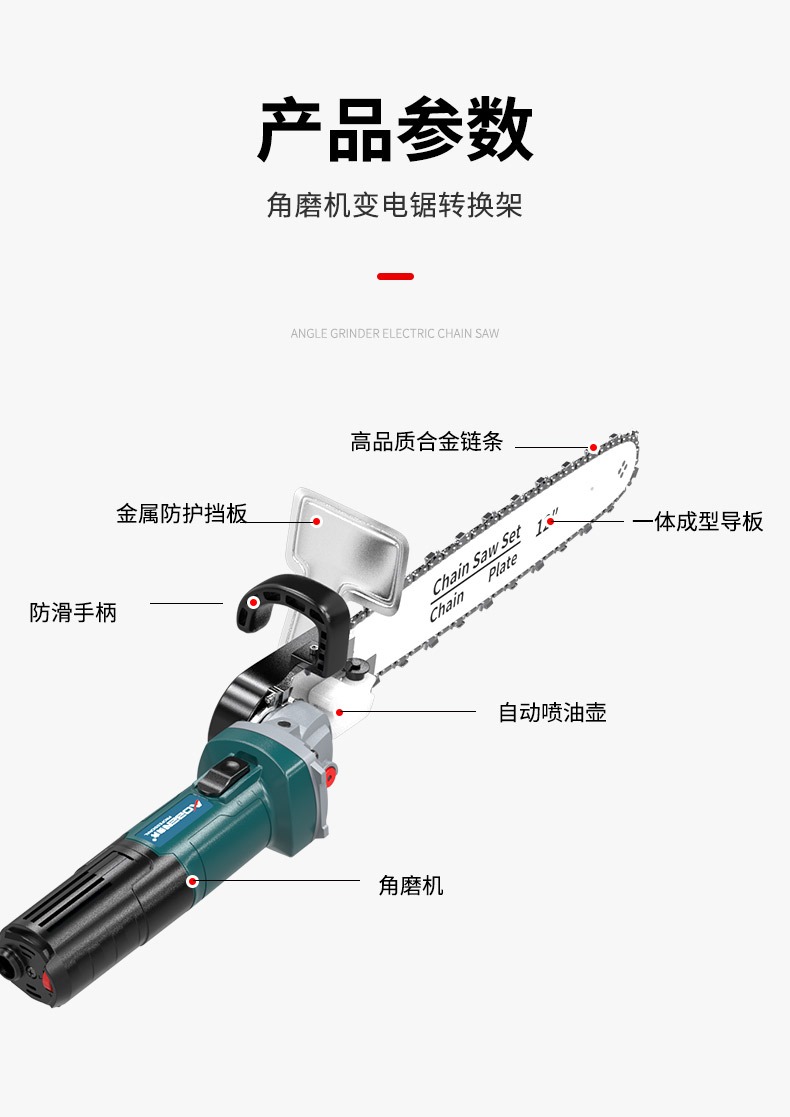 앵글 그라인더 수정 된 전기 체인 톱 액세서리 전기 톱 가정용 소형 미니 휴대용 다기능 목공 절단 목재 톱
