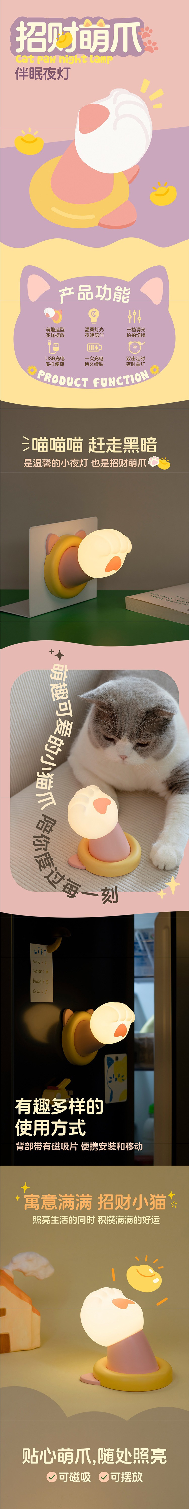 • 둥근 손을 뻗어 고양이 램프❤핀치하고 두드려서 빛이 날까봐 걱정 + 3단계 조광 + 장식품 수집 + 어린 시절로 돌아가서 부와 귀여운 발톱을 모으세요