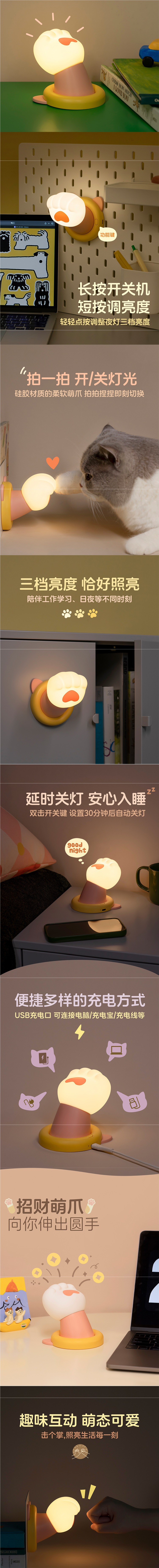 운이 좋은 손 사랑스러운 고양이 발톱 야간 조명 침대 옆 램프 분위기 방 수면 아기 먹이 어린이 눈 보호 밤스토어 가기