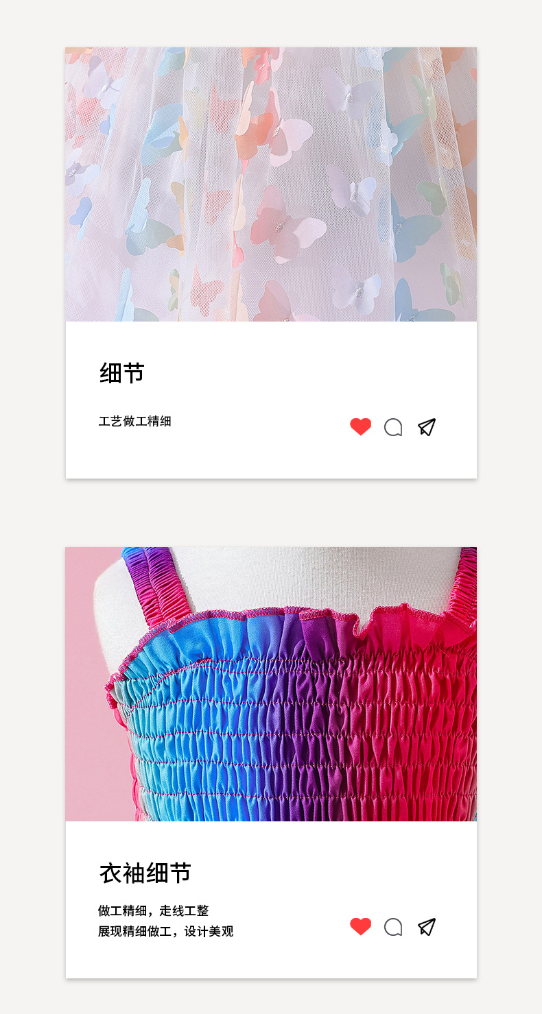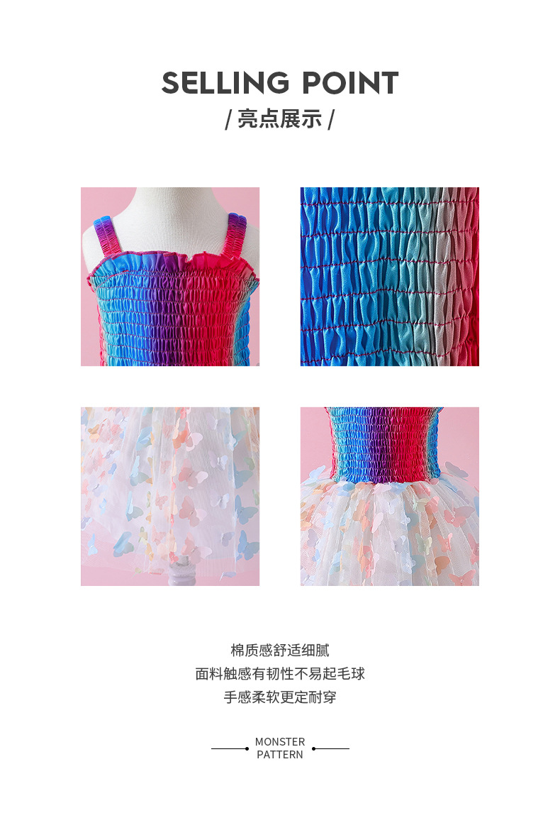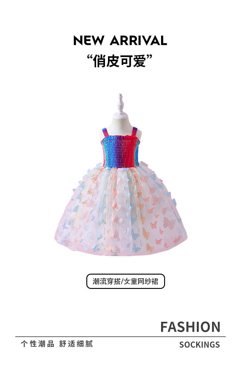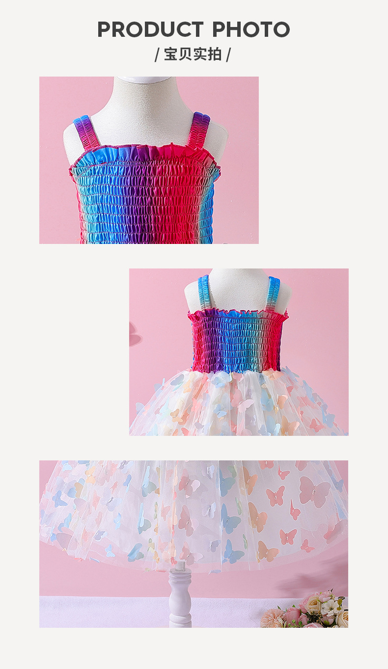 대외 무역 소녀 원피스 여름 슬링 서양식 거즈 메쉬 스커트 다채로운 나비 요소 무지개 어린이 퍼프 스커트