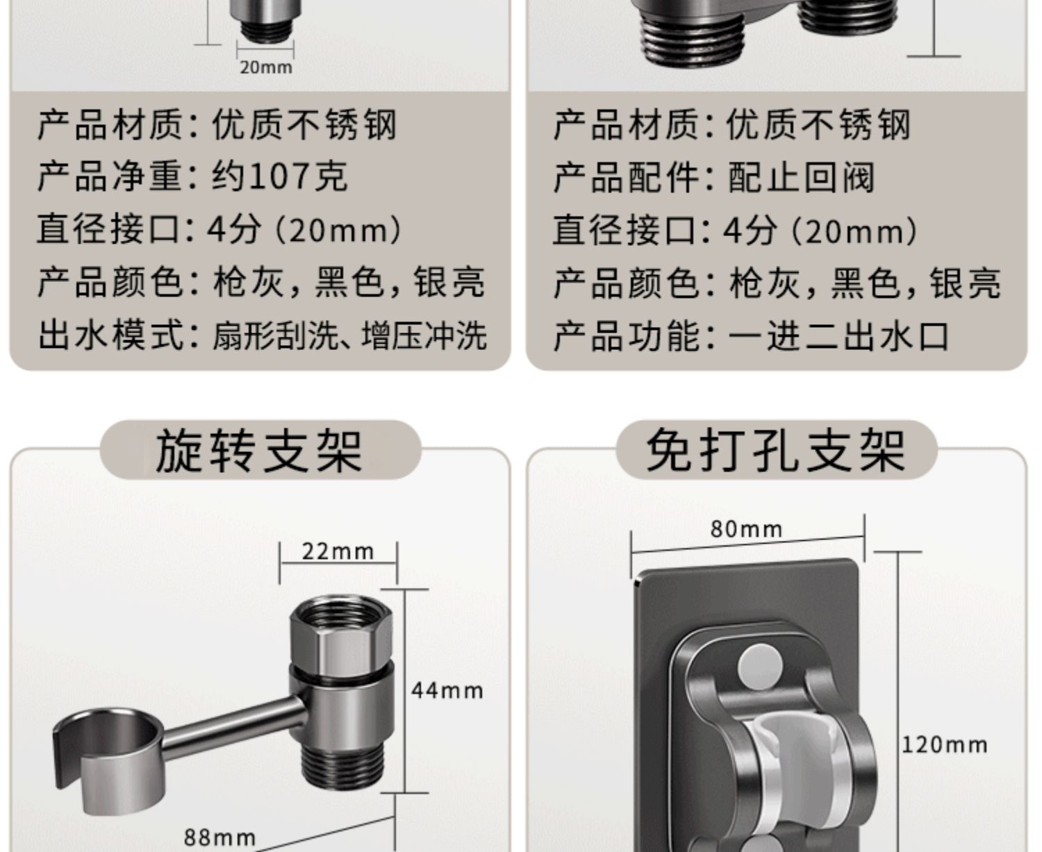 ✅화장실 동반자 스프레이 건 플러시 밸브 1 대 2 아웃 수도꼭지 앵글 밸브 물 총 고압 화장실 홈스토어 가기
