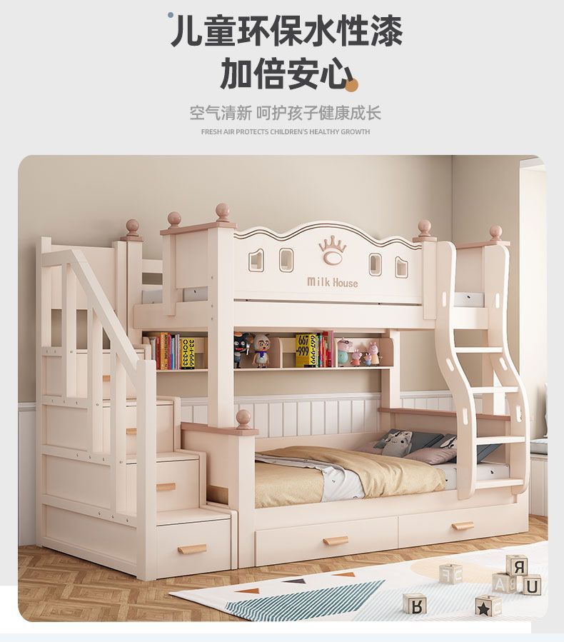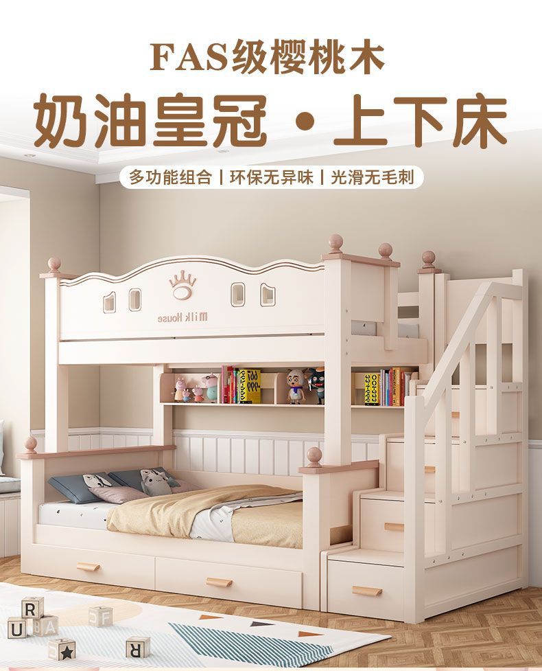 벙크 침대 풀 솔리드 우드 어린이 침대 높고 낮은 침대 체리 우드 두꺼운 엄마와 아이 침대 엄마와 아이 2 층 이층 침대 침대