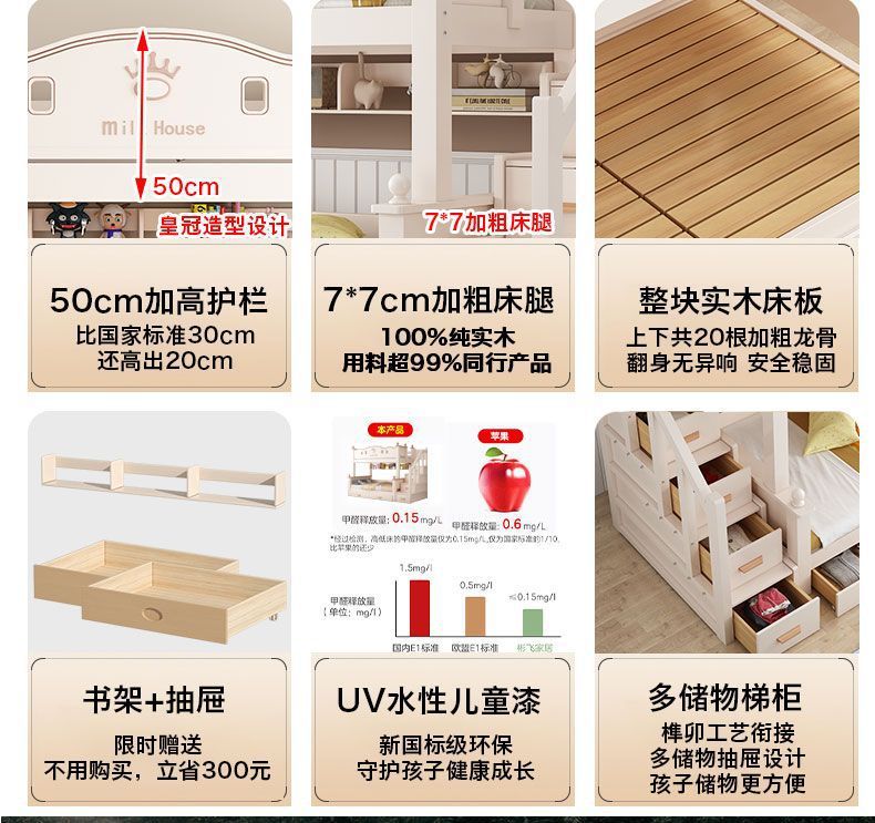 • 사다리 캐비닛에는 매트리스 2개 + 책장 + 서랍 가방이 위층으로 배송됩니다.