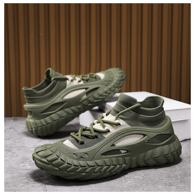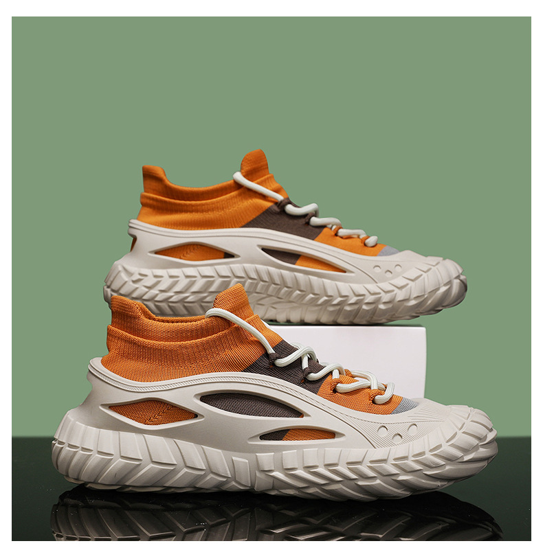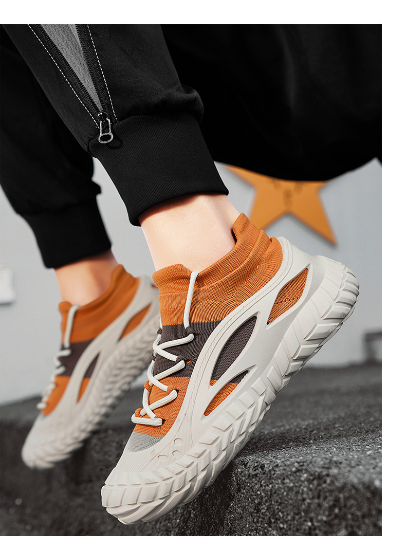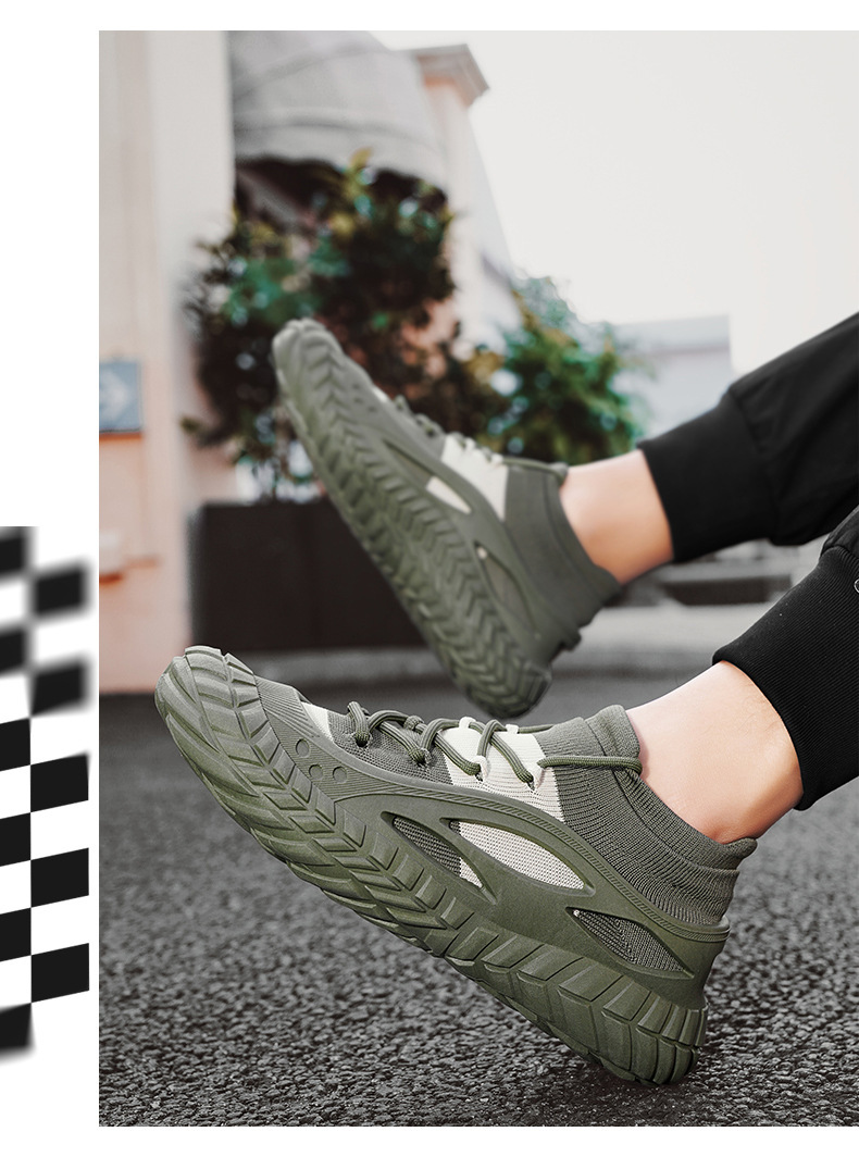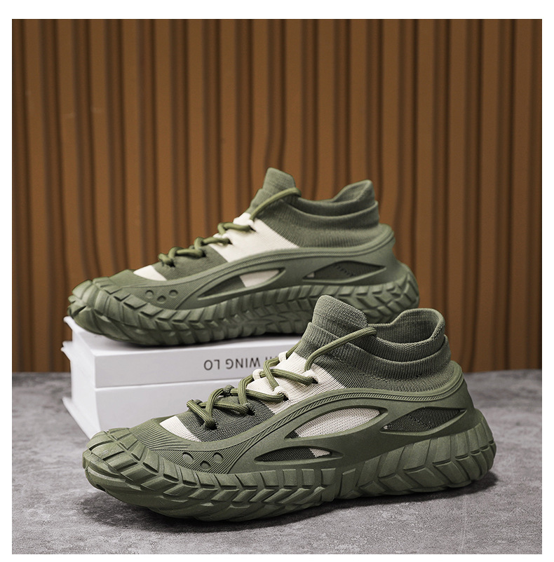 2025 봄과 여름 남성 신발 통기성 플라이 짠 페달 양말 신발 캐주얼 패션 메쉬 운동화 국경 도매