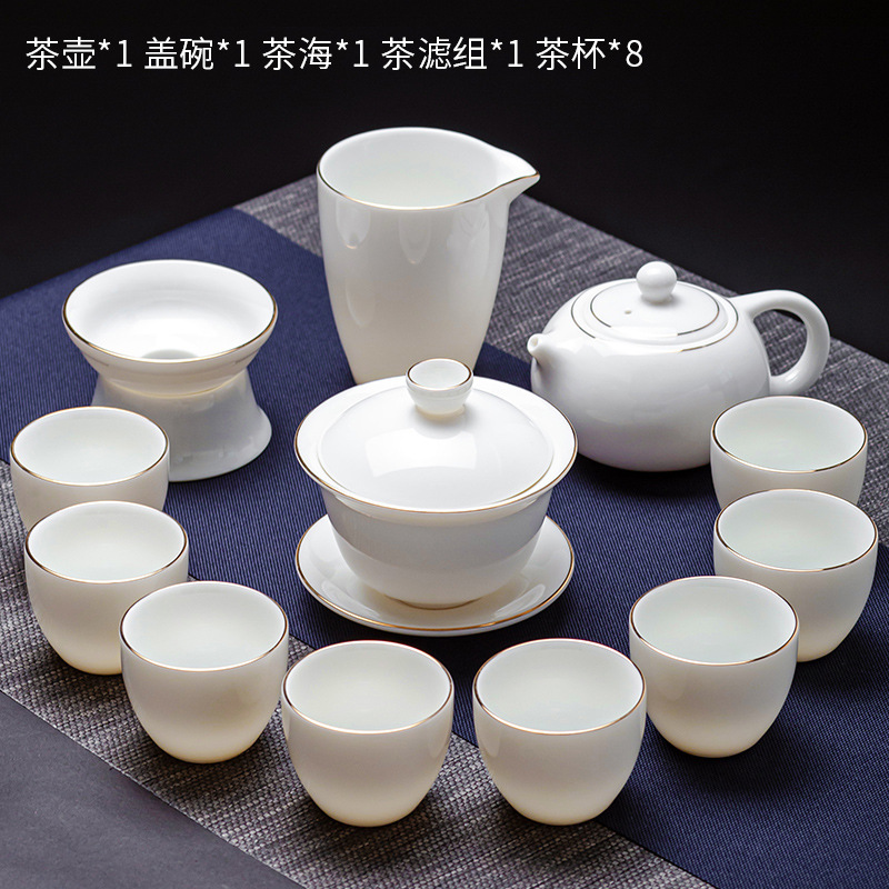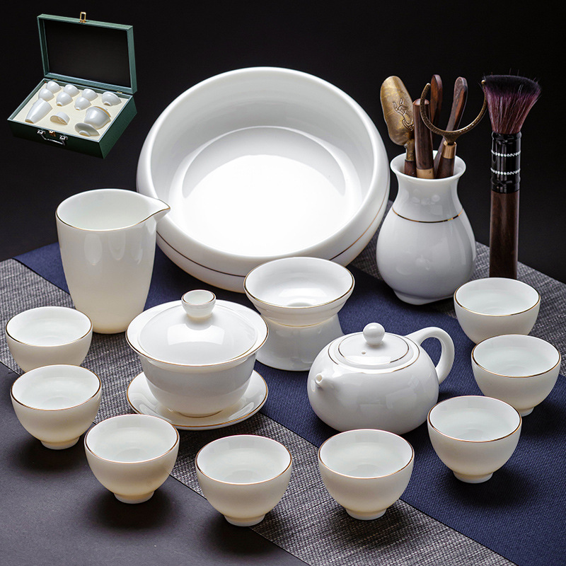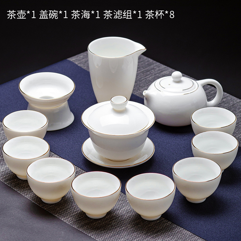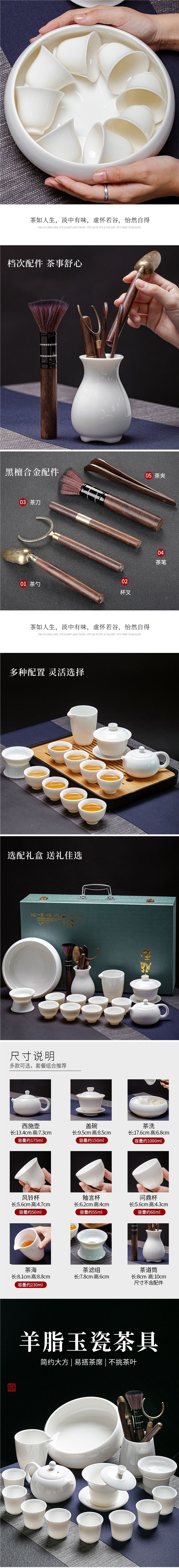 양 뚱뚱한 옥 흰색 도자기 쿵푸 차 세트 세트 홈 오피스 주전자 뚜껑 컵 세라믹 하이 엔드 가벼운 고급 선물 제공