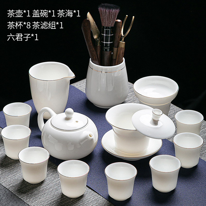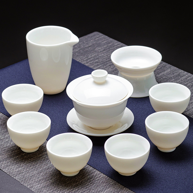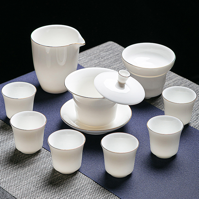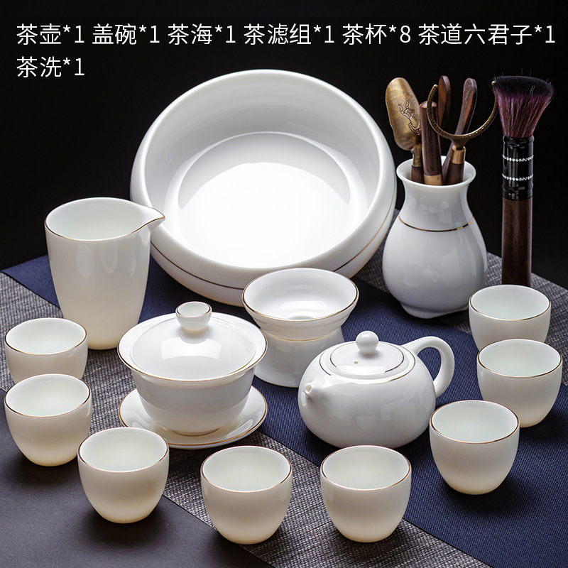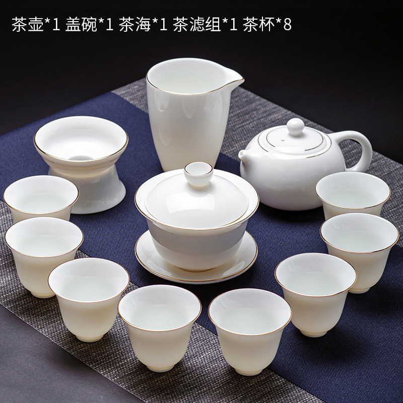 양 뚱뚱한 옥 흰색 도자기 쿵푸 차 세트 세트 홈 오피스 주전자 뚜껑 컵 세라믹 하이 엔드 가벼운 고급 선물 제공