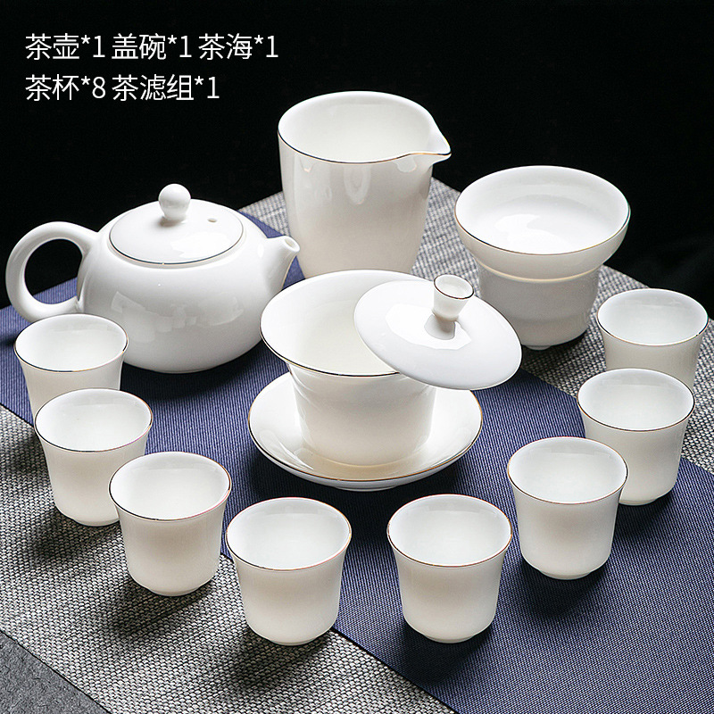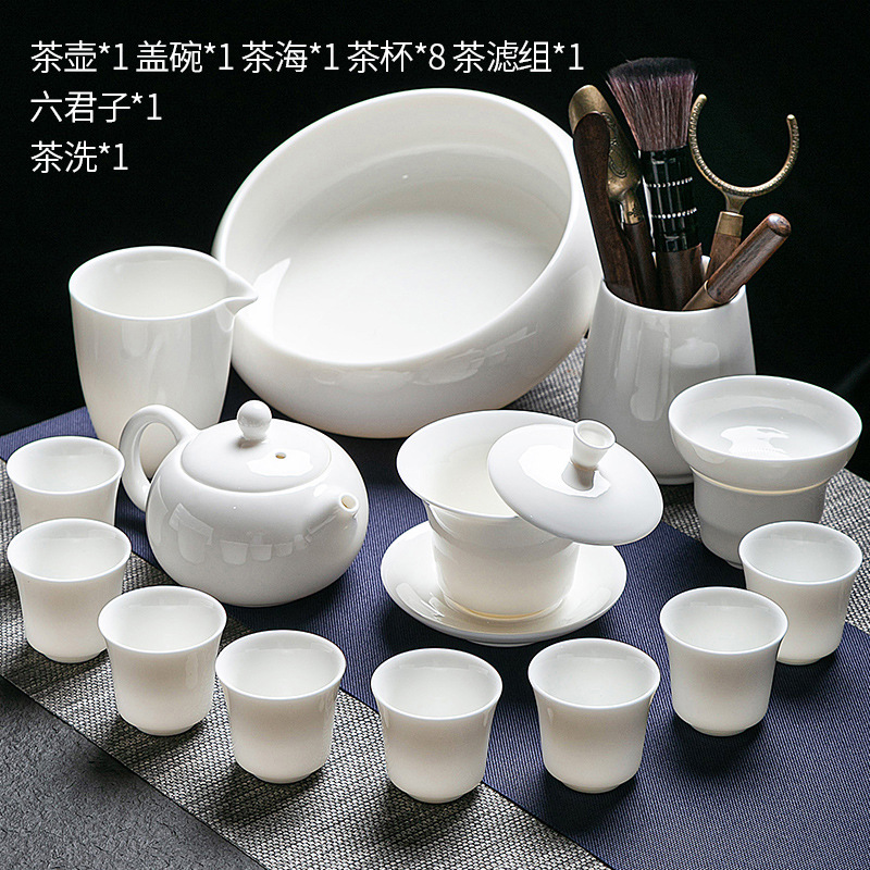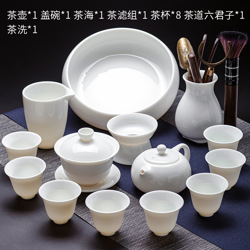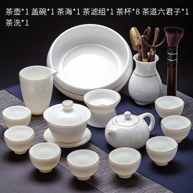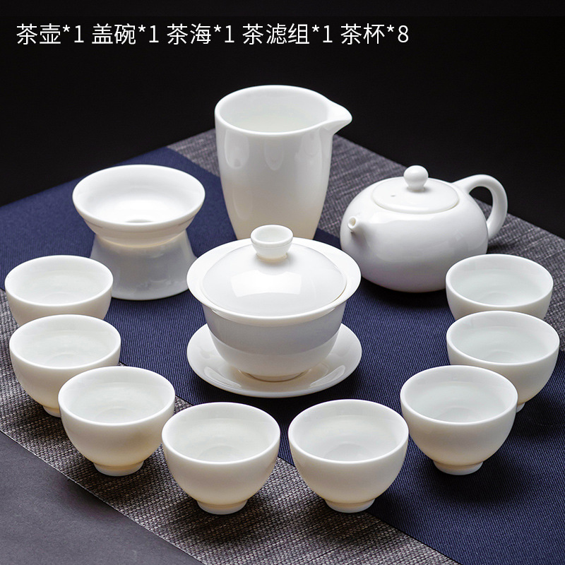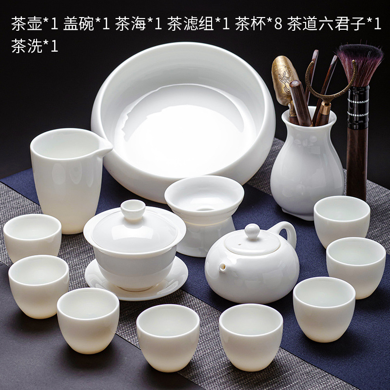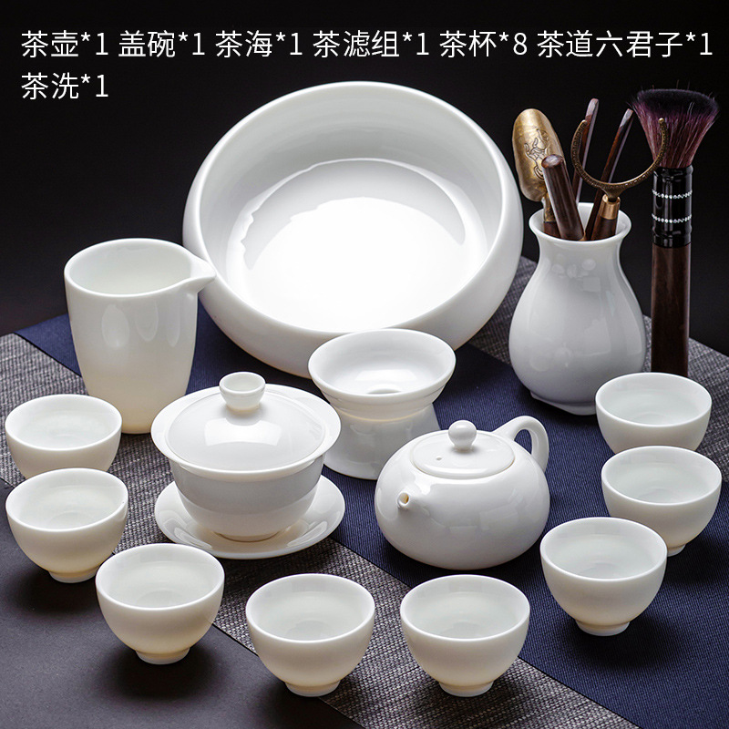 양 뚱뚱한 옥 흰색 도자기 쿵푸 차 세트 세트 홈 오피스 주전자 뚜껑 컵 세라믹 하이 엔드 가벼운 고급 선물 제공스토어 가기