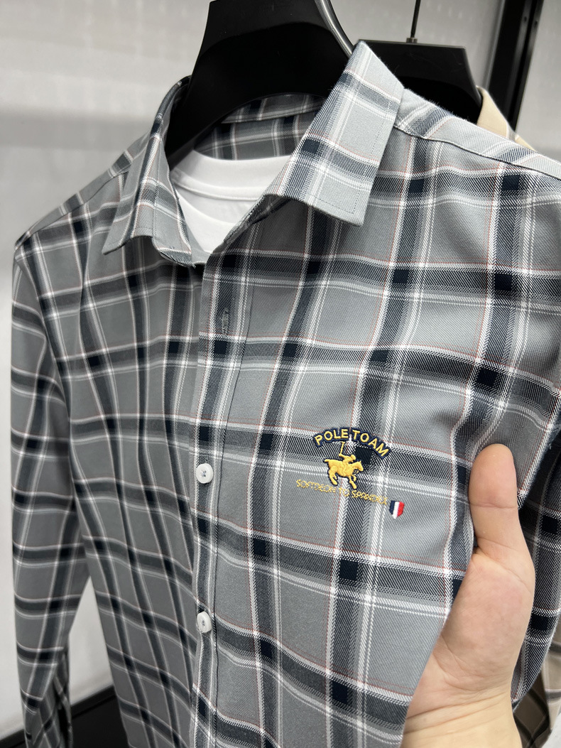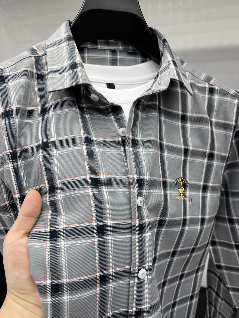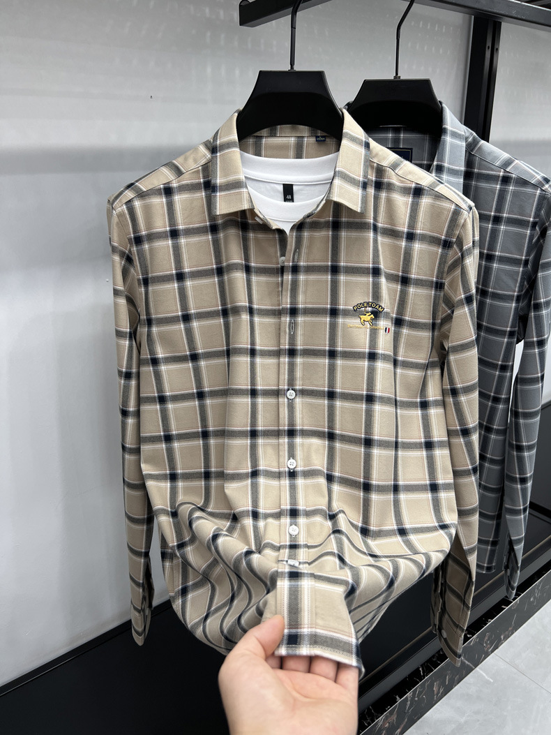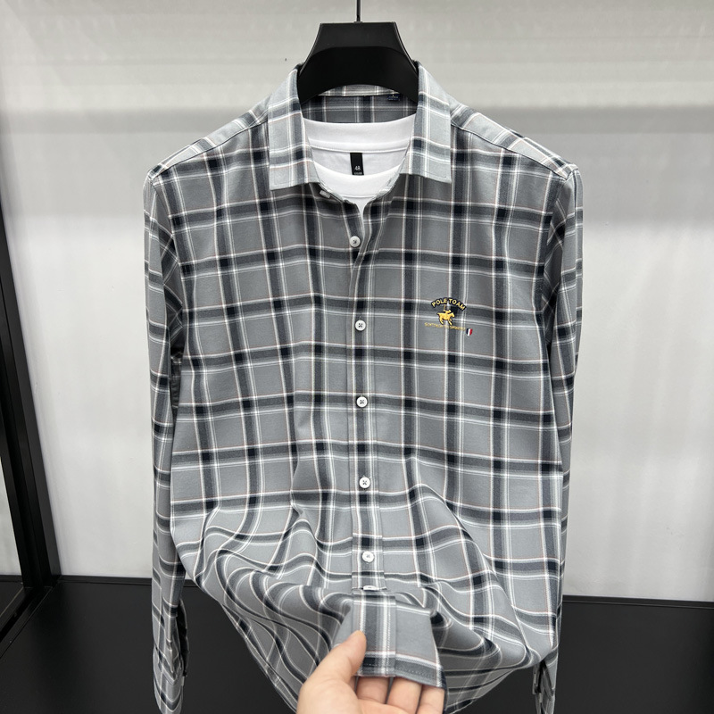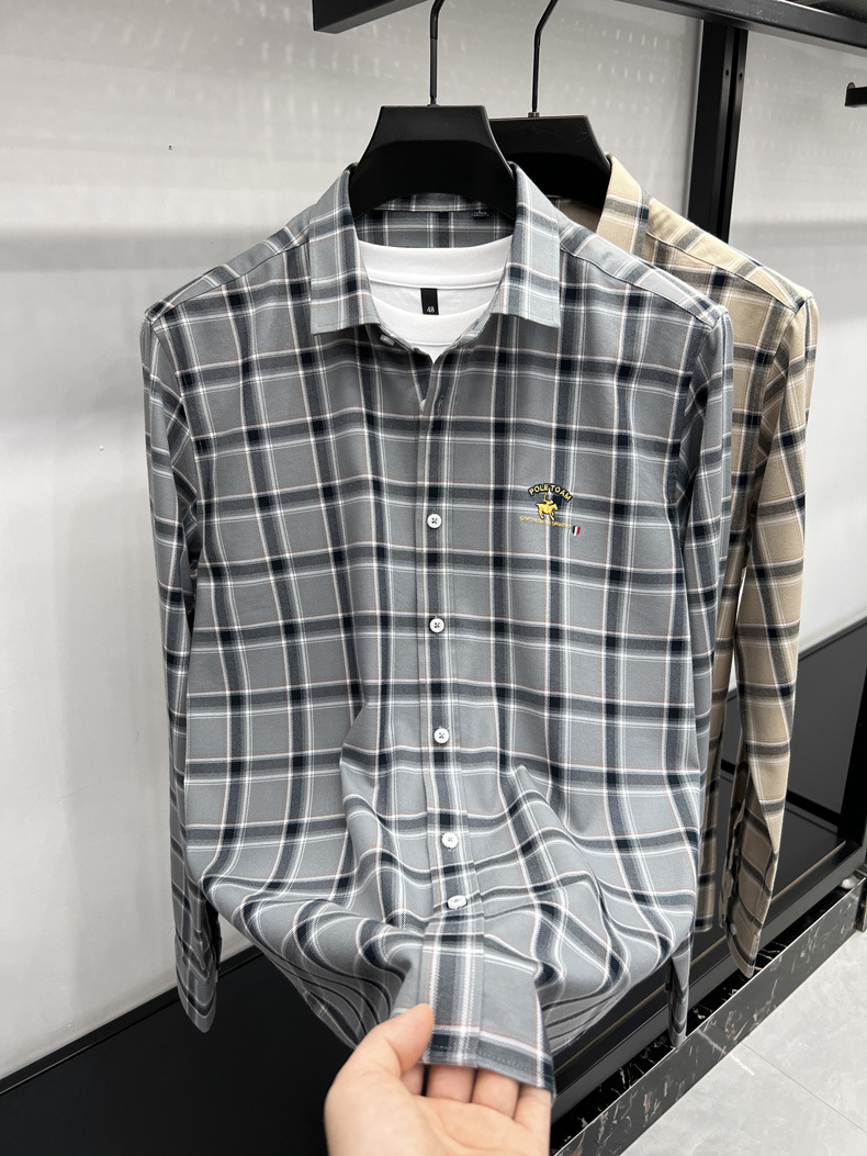 2025 봄 새 면 긴팔 셔츠 남자 격자 무늬 클래식 자수 비즈니스 캐주얼 올 매치 남자 셔츠스토어 가기