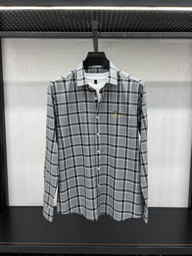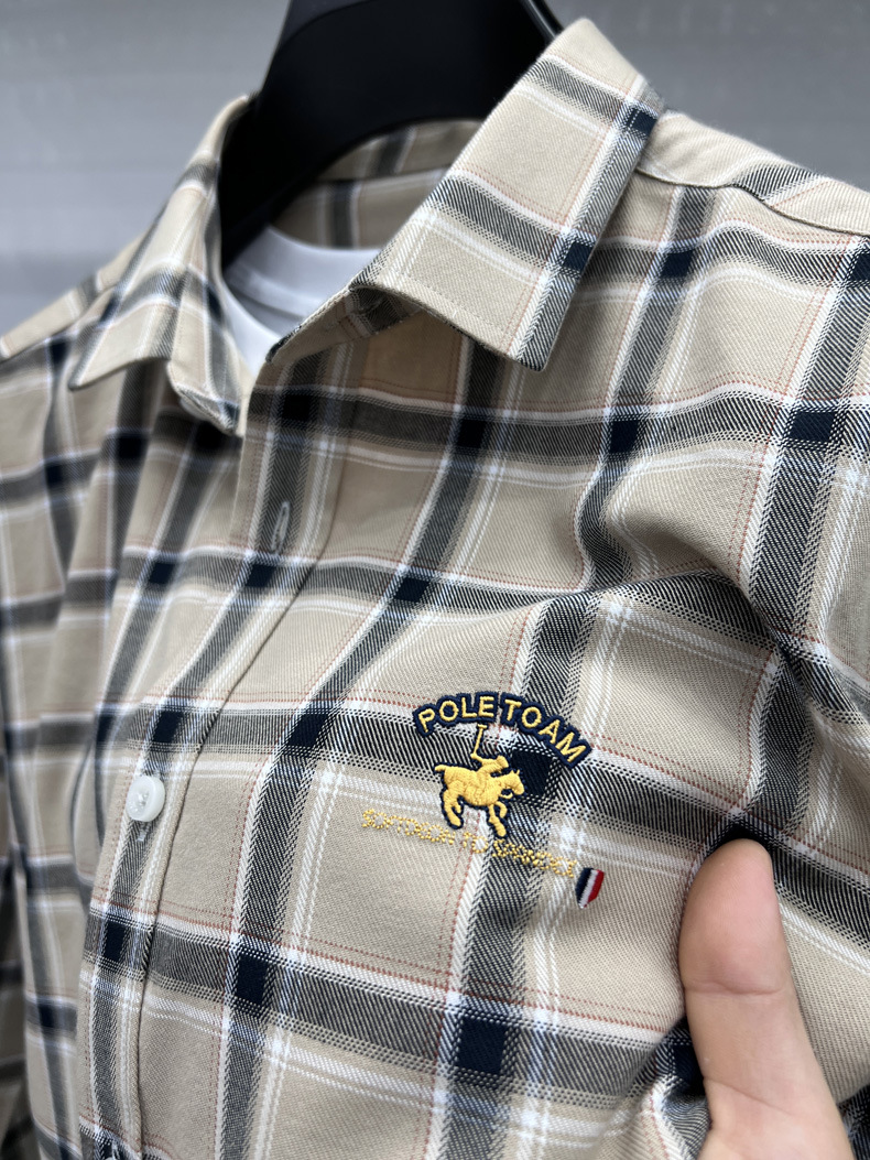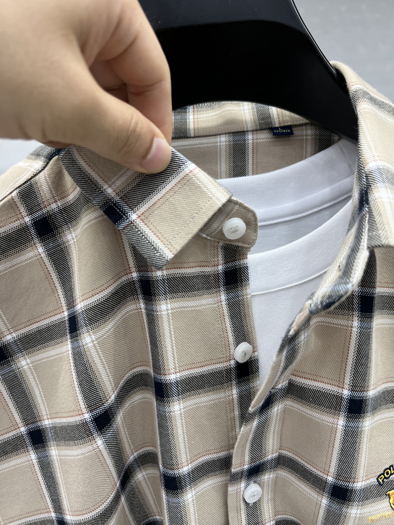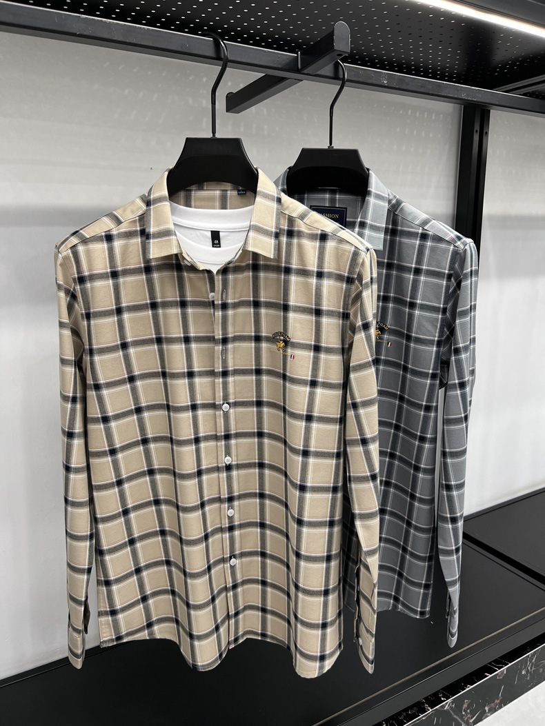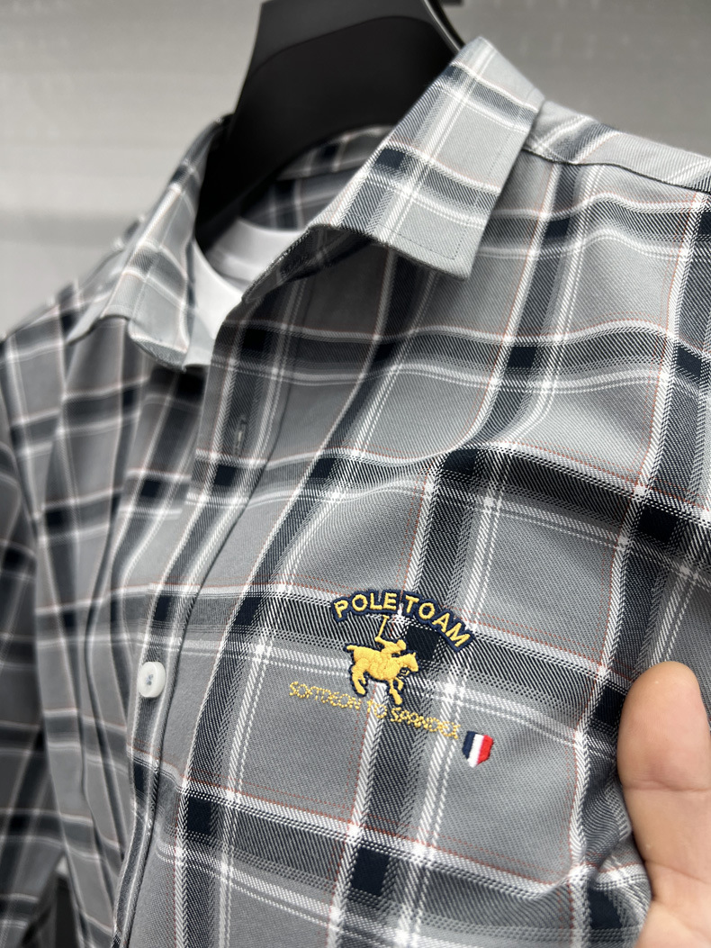 2025 봄 새 면 긴팔 셔츠 남자 격자 무늬 클래식 자수 비즈니스 캐주얼 올 매치 남자 셔츠스토어 가기