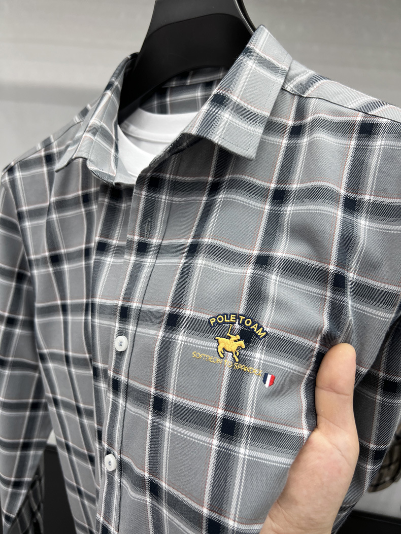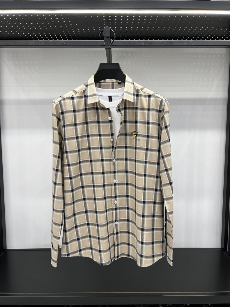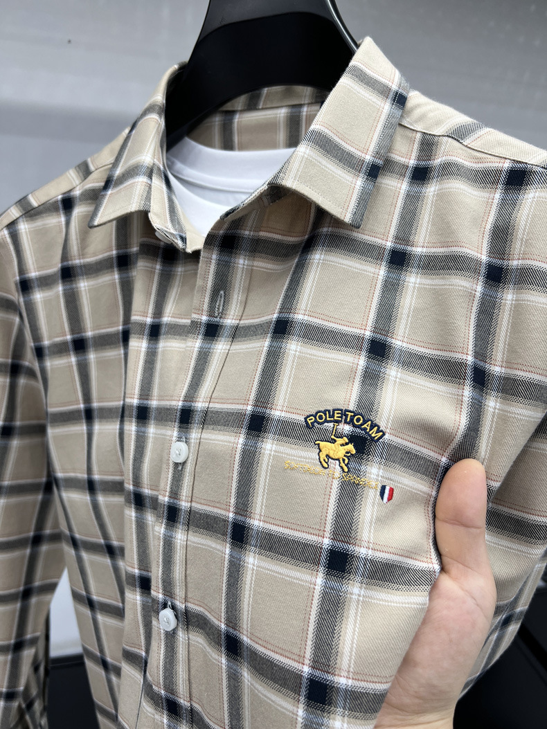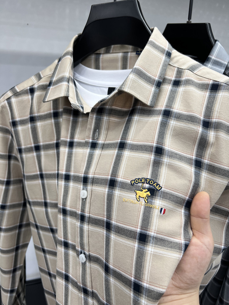 2025 봄 새 면 긴팔 셔츠 남자 격자 무늬 클래식 자수 비즈니스 캐주얼 올 매치 남자 셔츠