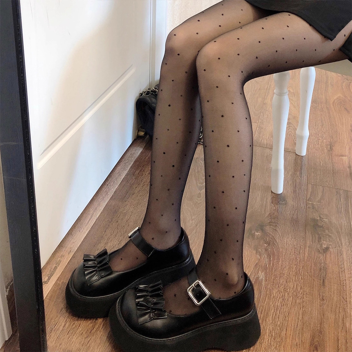 자카드 폴카 도트 실크 스타킹 섹시한 폴카 도트 러브 팬티 스타킹 초박형 베이스 스타킹 섹시한 블랙 실크베이스 스타킹스토어 가기