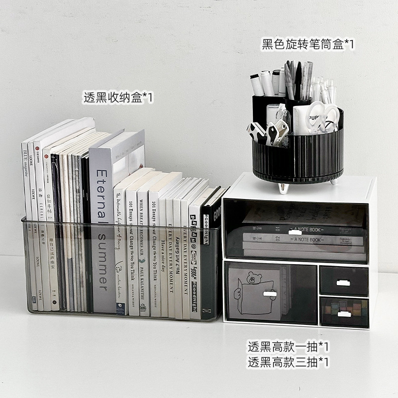 • [4개입] 대형 - 투명 그레이 + 수납박스 + 펜홀더