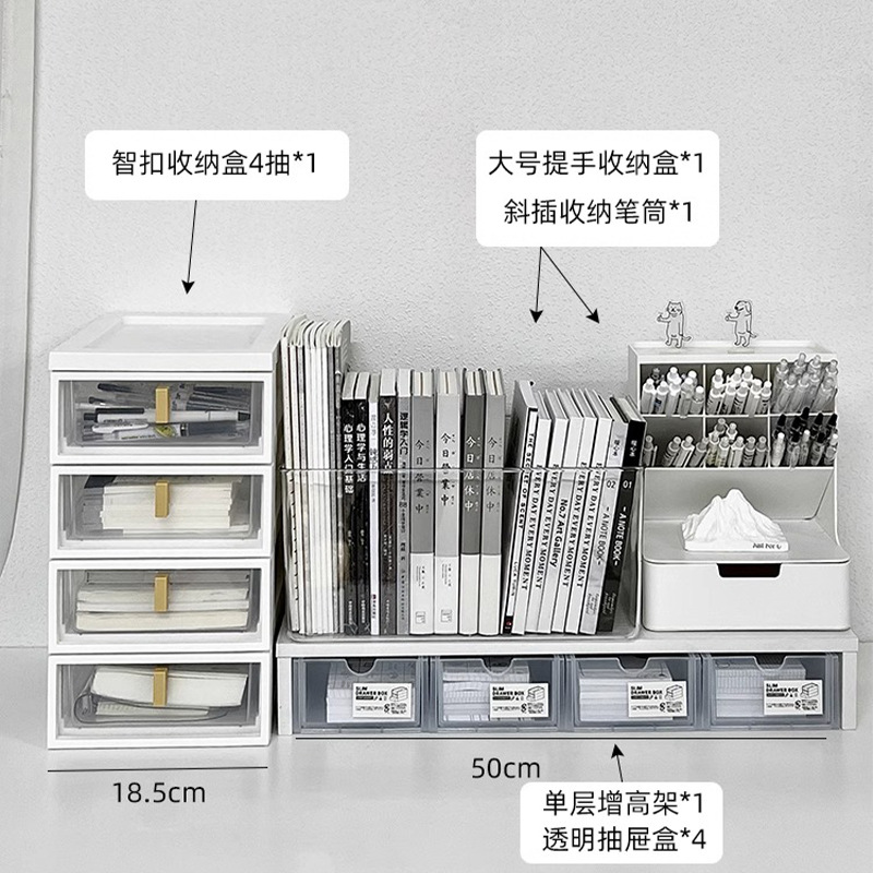 • [7개입] 대형 - 투명그레이 + 펜홀더 + 수납박스 + 높은선반