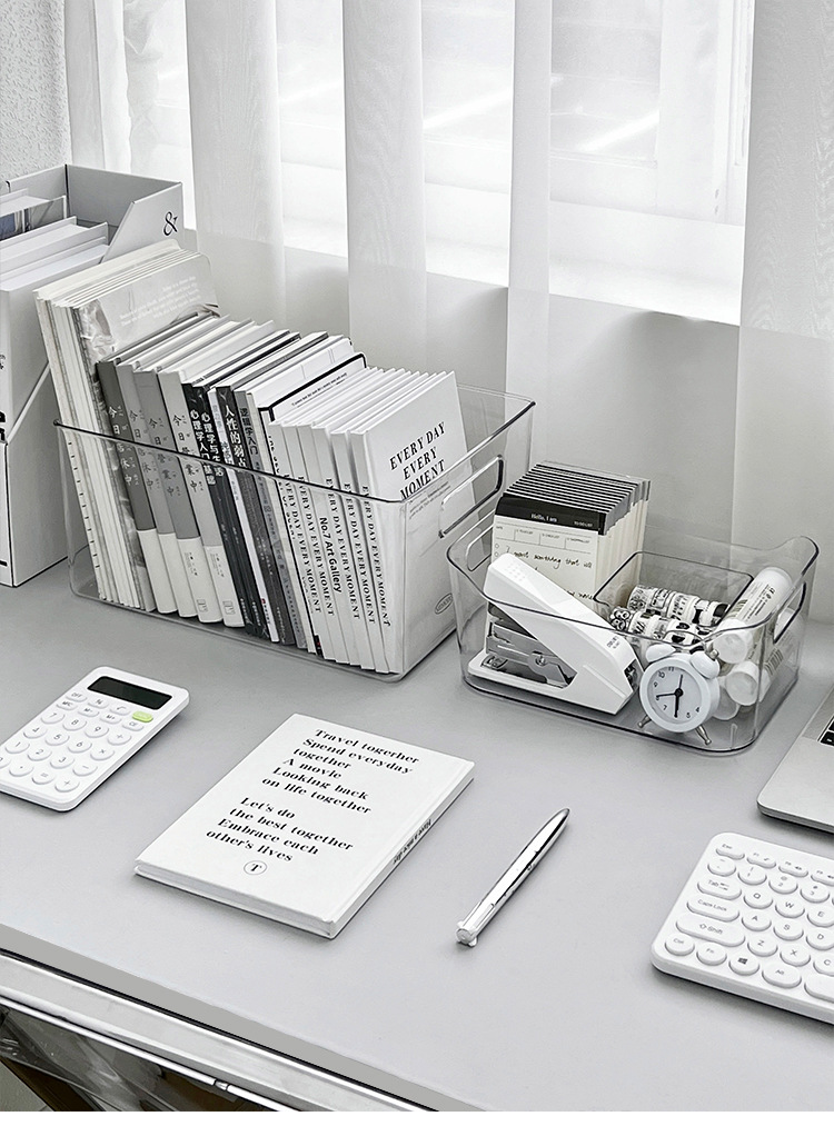 아크릴 데스크탑 저장 상자 투명 기숙사 책상 문구 책 보관 랙 파일 상자 사무실 파일 바구니
