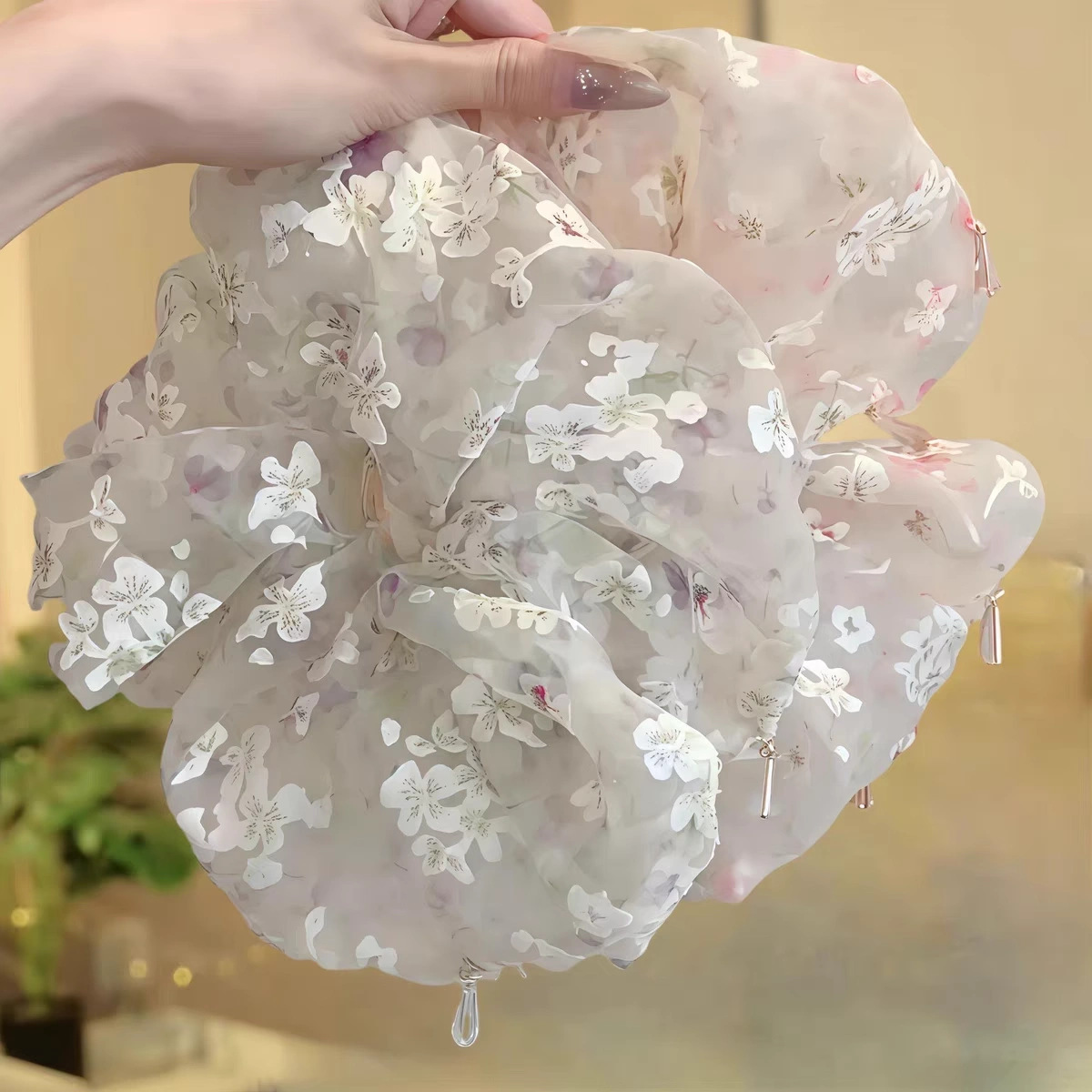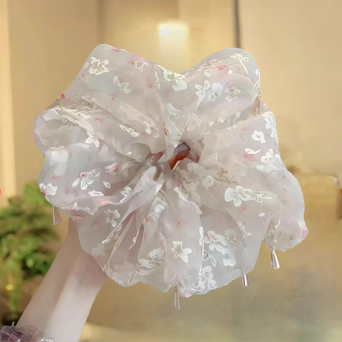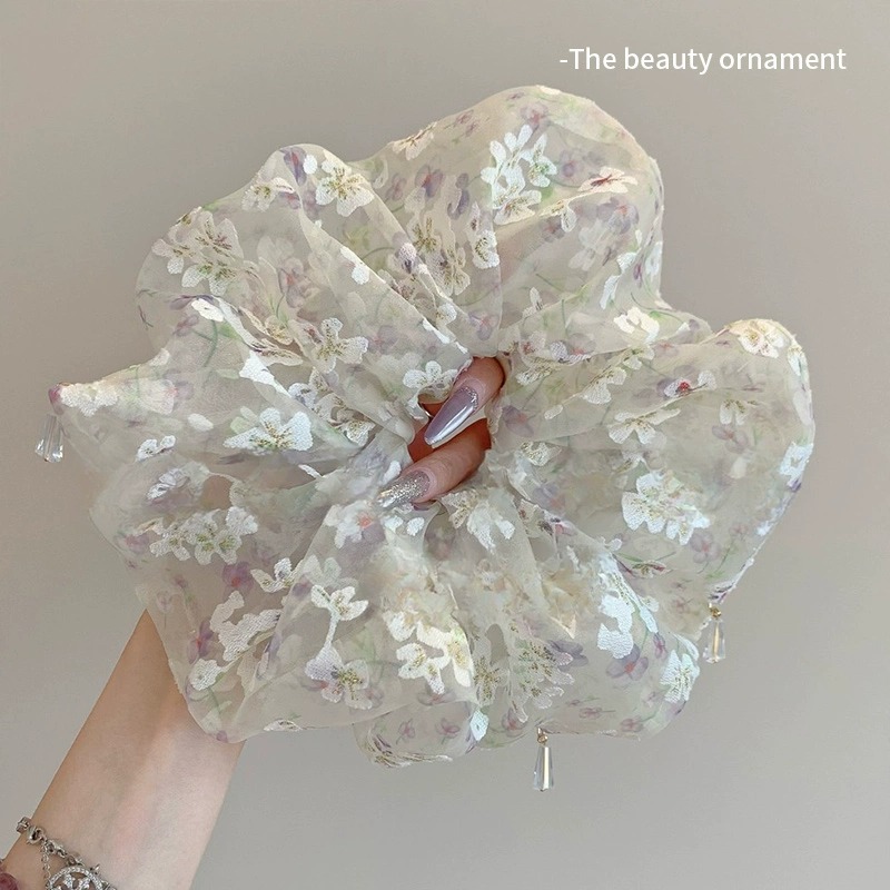 봄 새로운 모리 메쉬 꽃 콜론 헤어 링 여성의 멋진 우아한 로우 포니 테일 볼 헤어 로프 헤어 액세서리