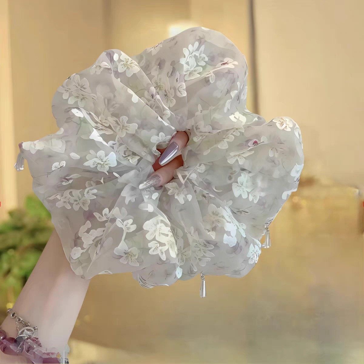 봄 새로운 모리 메쉬 꽃 콜론 헤어 링 여성의 멋진 우아한 로우 포니 테일 볼 헤어 로프 헤어 액세서리스토어 가기
