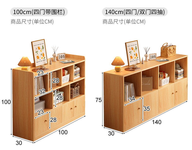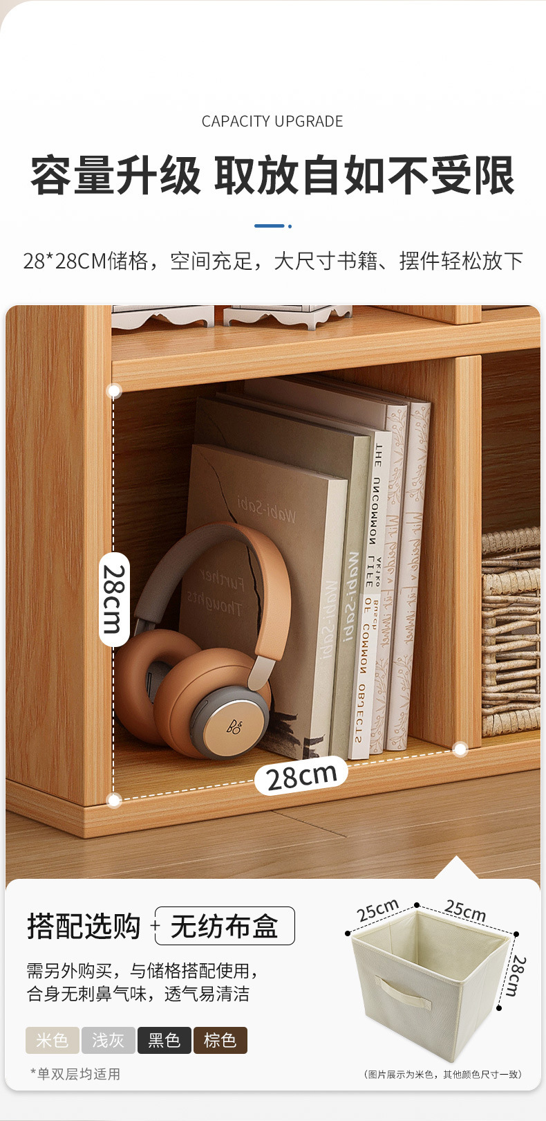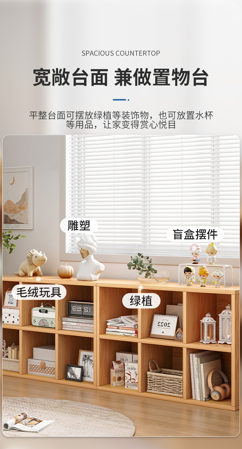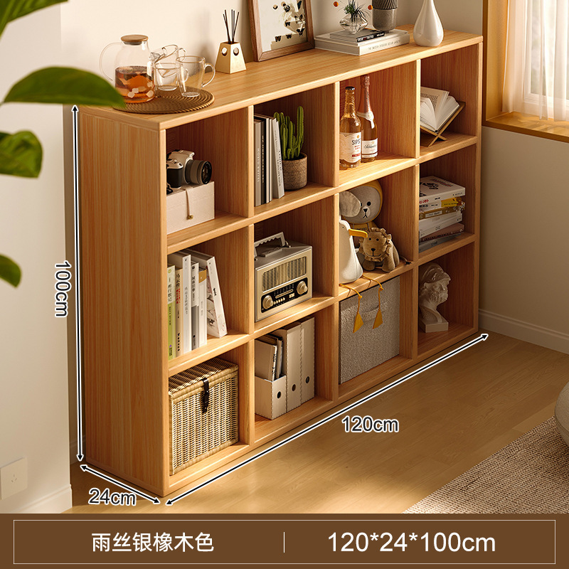 实木色书架落地客厅储物格子柜家用原木风置物架电视收纳柜矮书柜