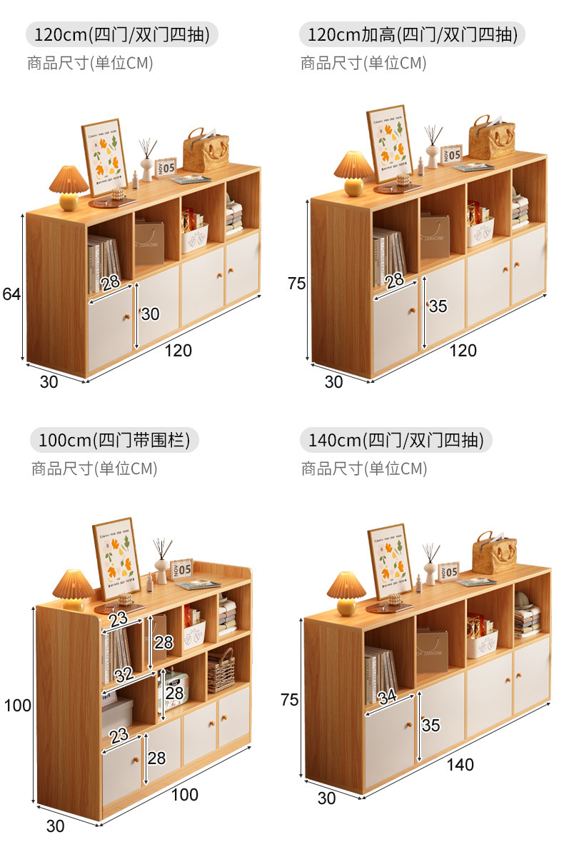 • [서랍 없는 4도어 - 넓어짐] 따뜻한 흰색 키가 큰 모델 140x30x75CM