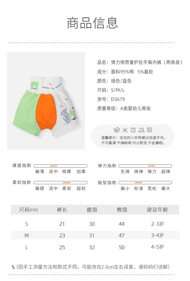 아기의 순면 팬티 남성 아기의 높은 허리 배꼽 보호 복서 반바지 어린이 엉덩이 복서 반바지 2 팩