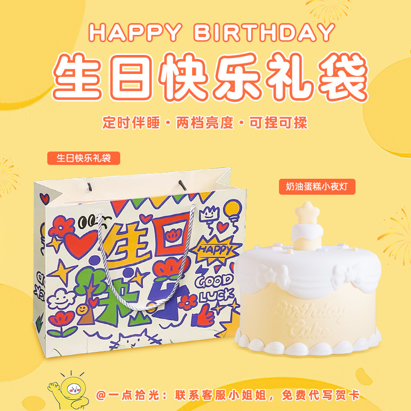 • [시광 노란색 작은 케이크] 생일 축하 선물 가방 + 대필 축하 카드 + 3년 보증