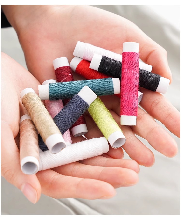 • 수동 재봉틀 흰색 + 12색 10야드 작은 실 롤