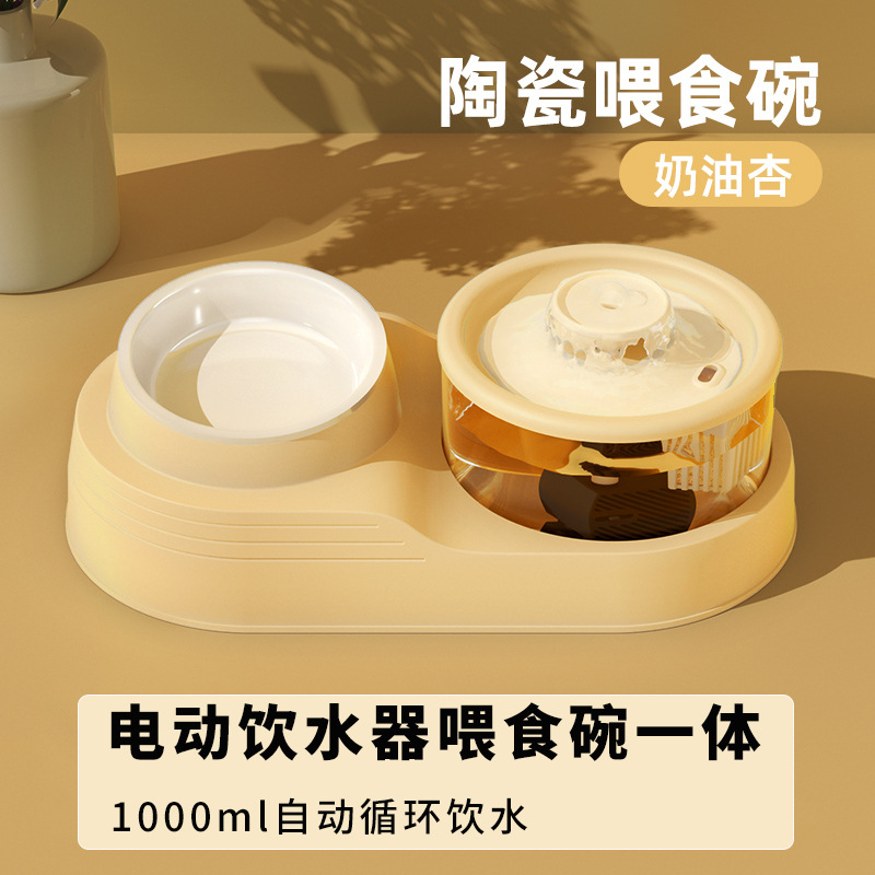 • 크림색 노란색 세라믹 그릇 - 일체형 전기 식수 공급 장치(순환하는 물, 절전)