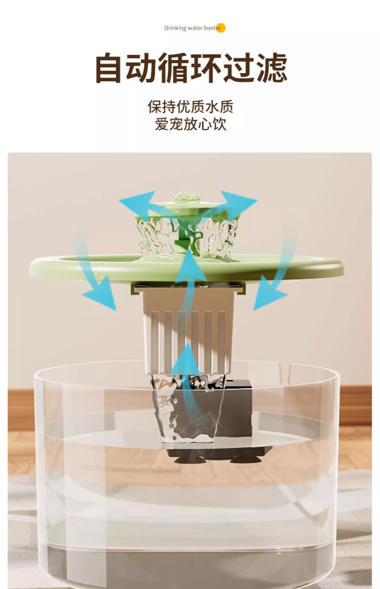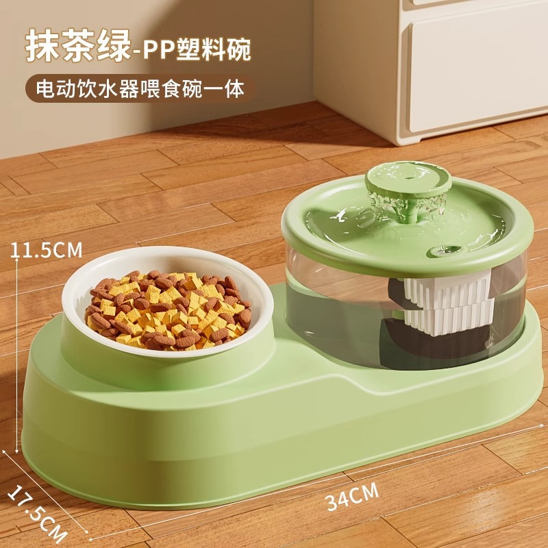 • 말차 그린 플라스틱 그릇 - 일체형 전기 식수 공급 장치(순환하는 물, 절전)