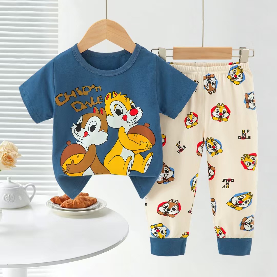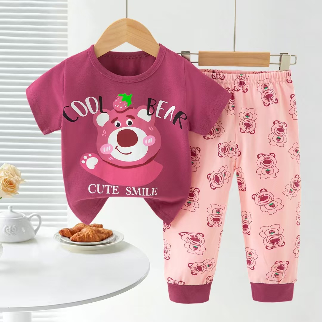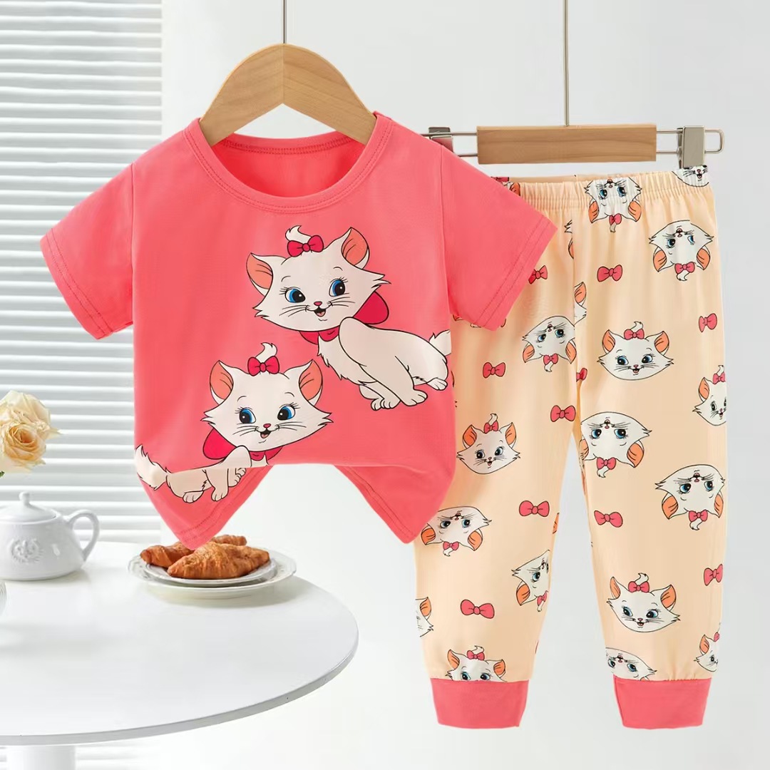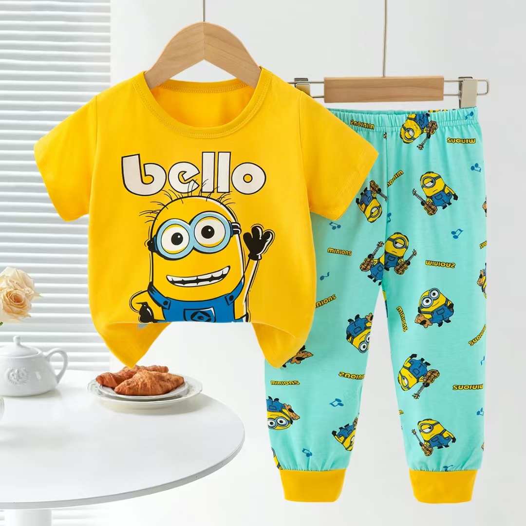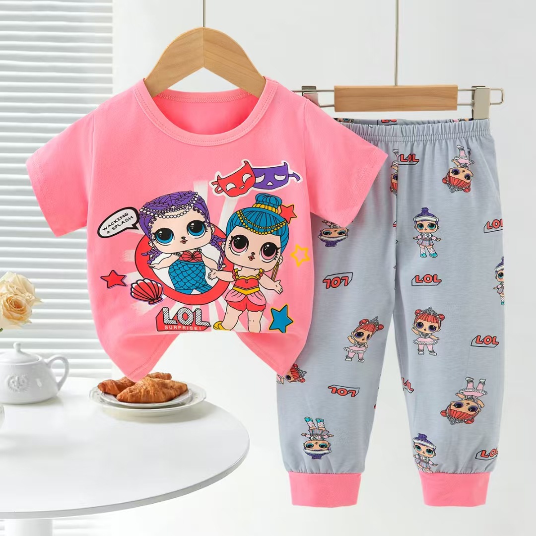 2025 아동복 어린이 잠옷 가을 짧은 소매 바지 소년 소녀 만화 홈 의류 세트 공장 직접 공급 한국판