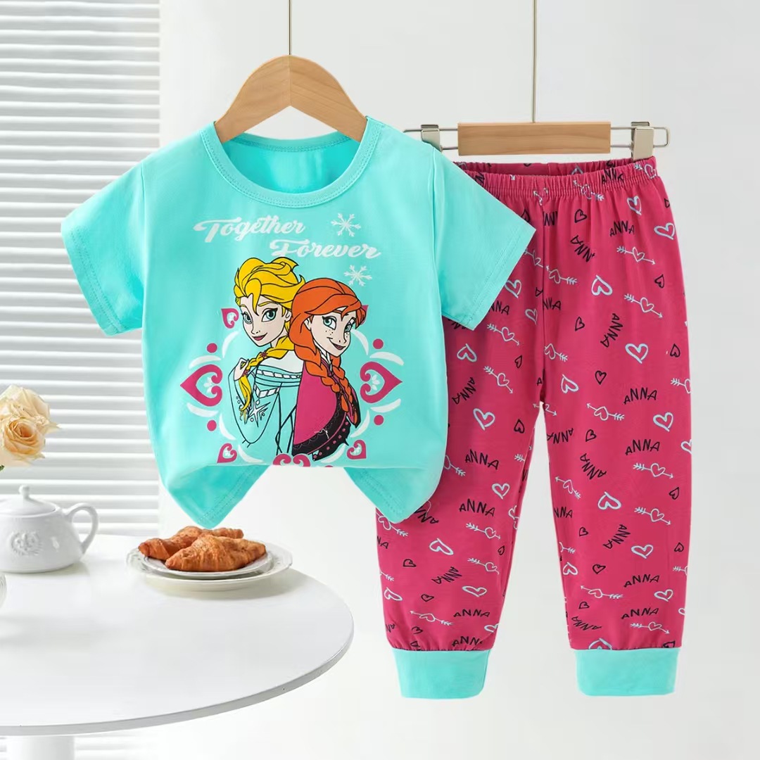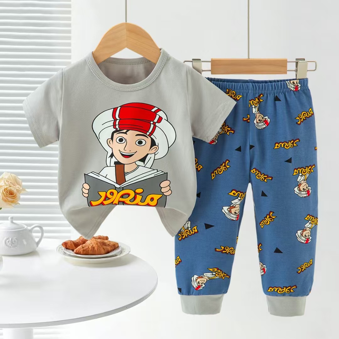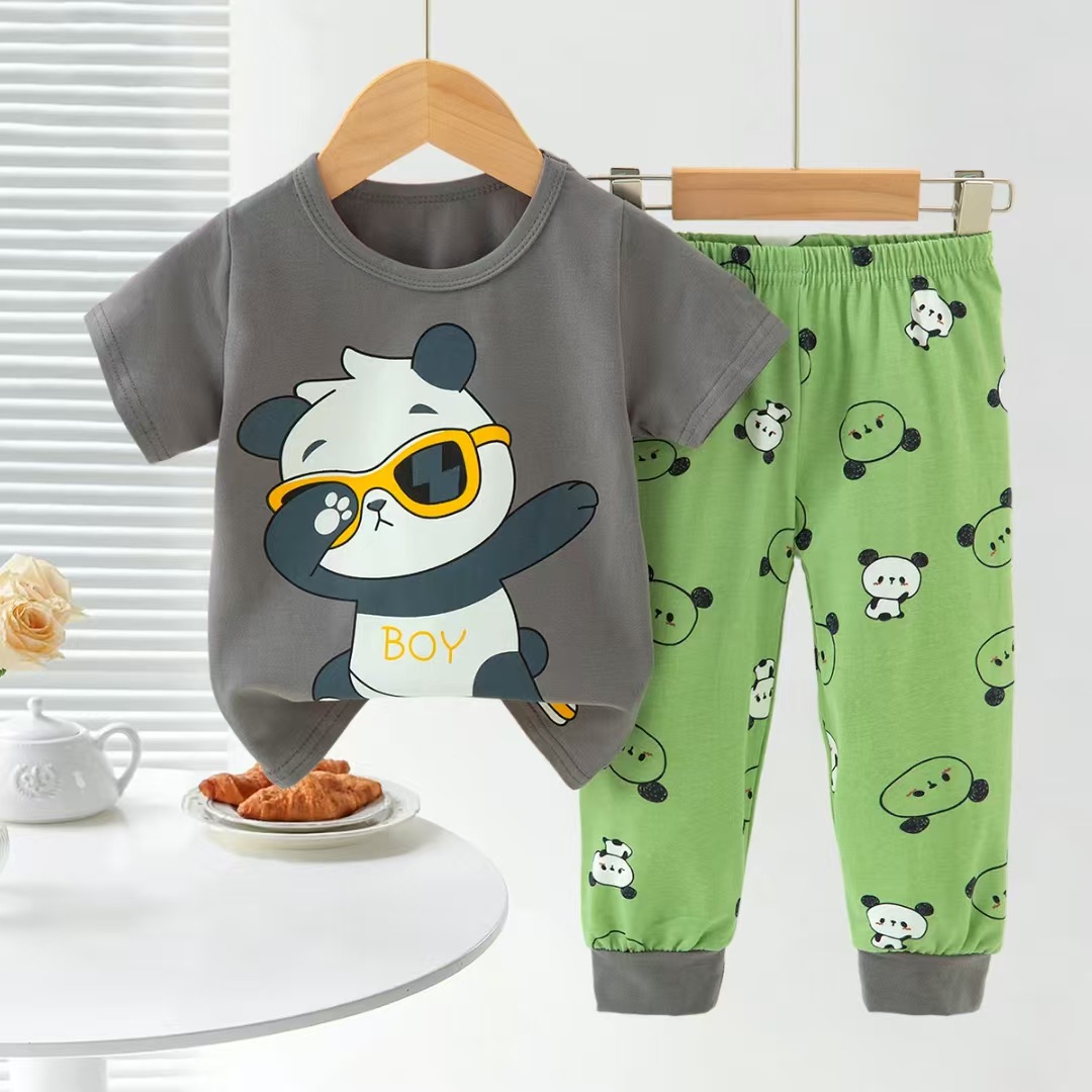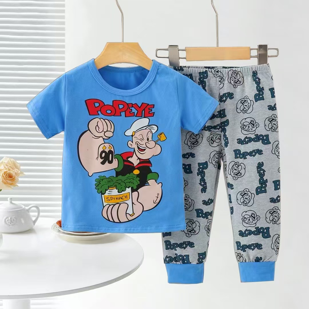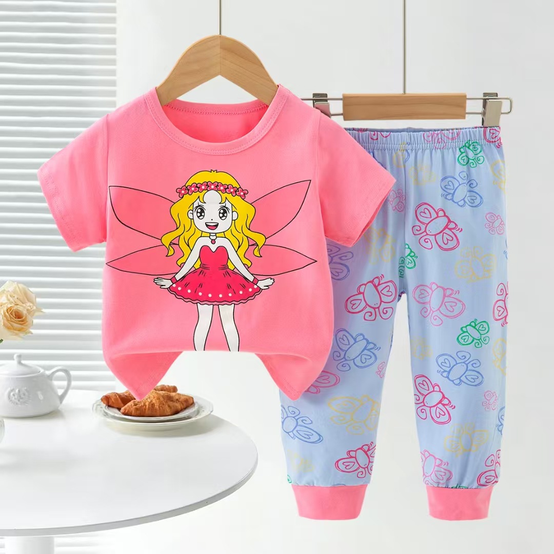 2025 아동복 어린이 잠옷 가을 짧은 소매 바지 소년 소녀 만화 홈 의류 세트 공장 직접 공급 한국판