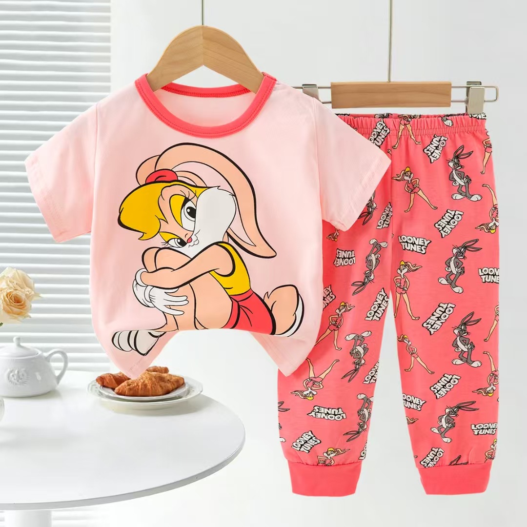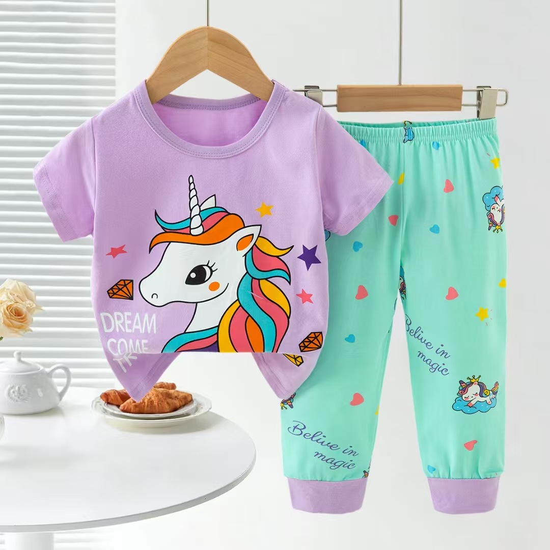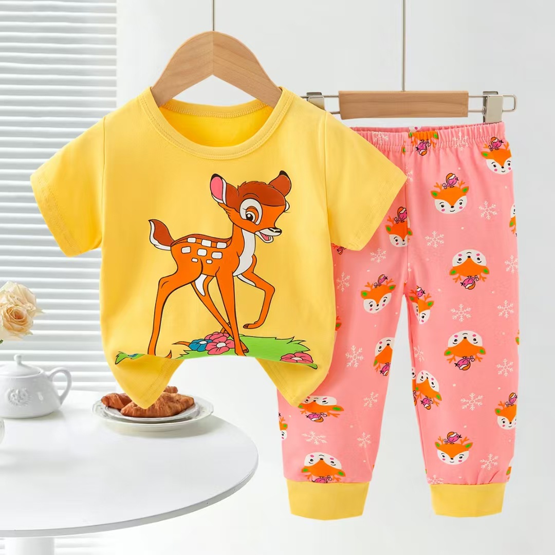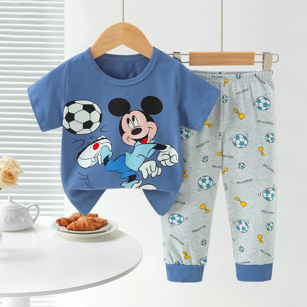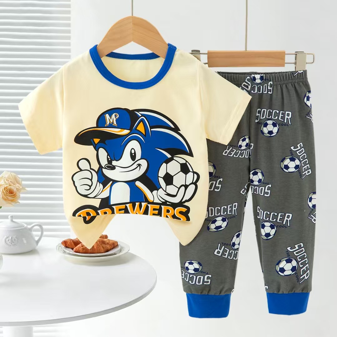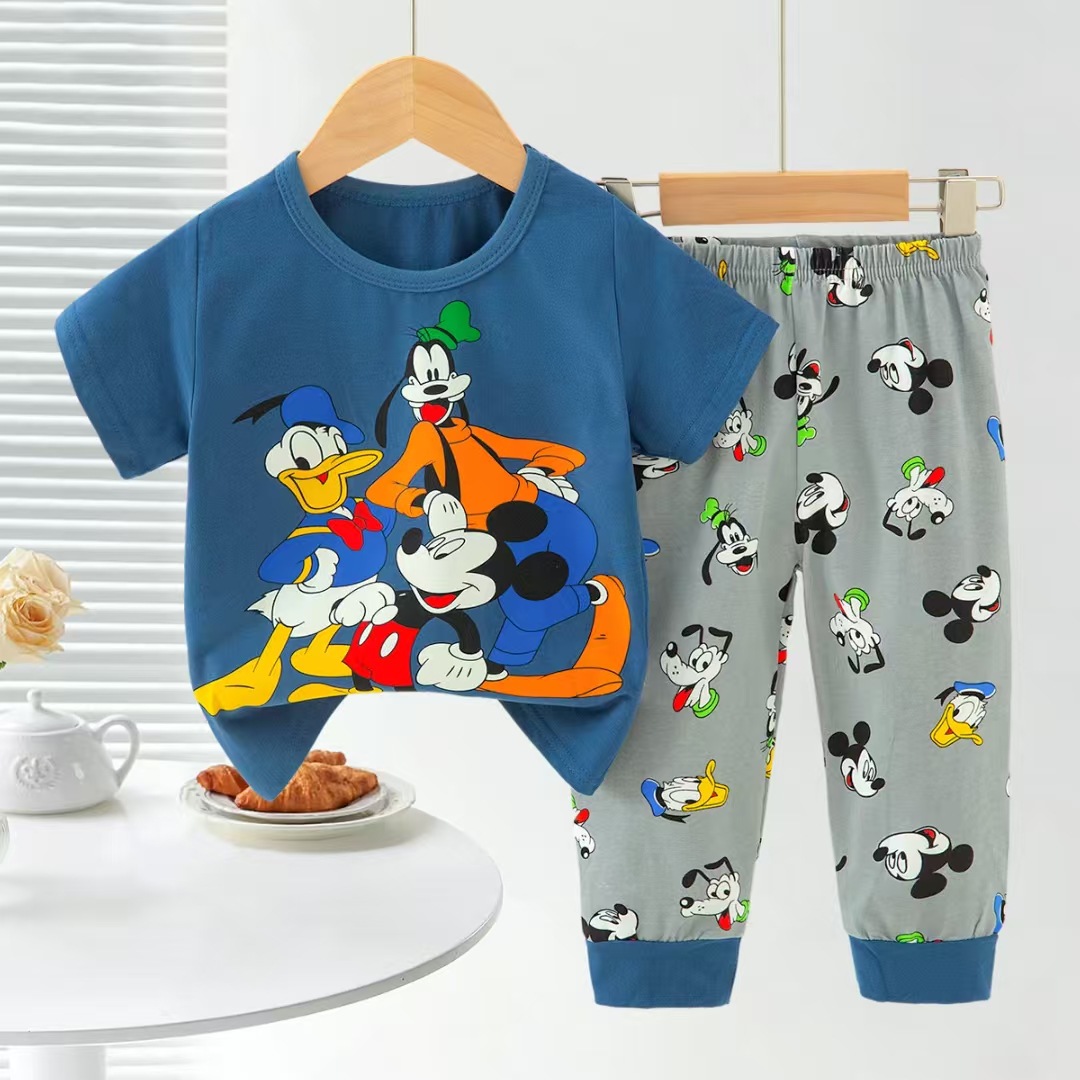 2025 아동복 어린이 잠옷 가을 짧은 소매 바지 소년 소녀 만화 홈 의류 세트 공장 직접 공급 한국판