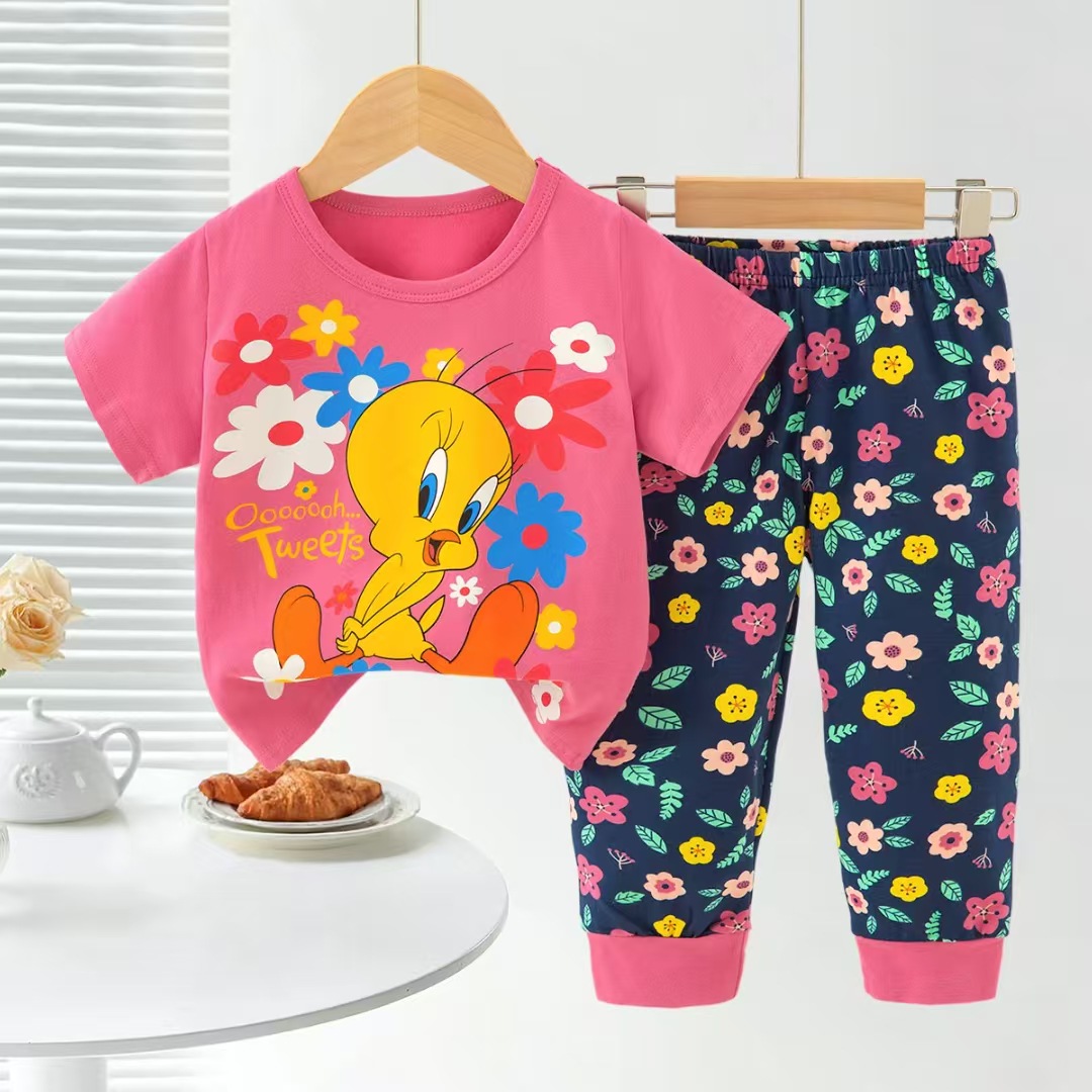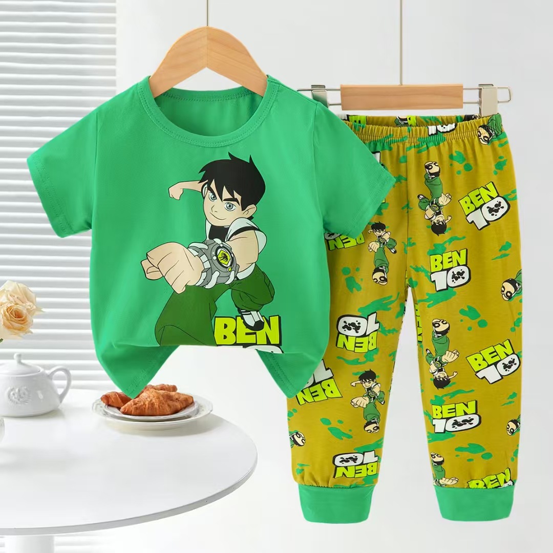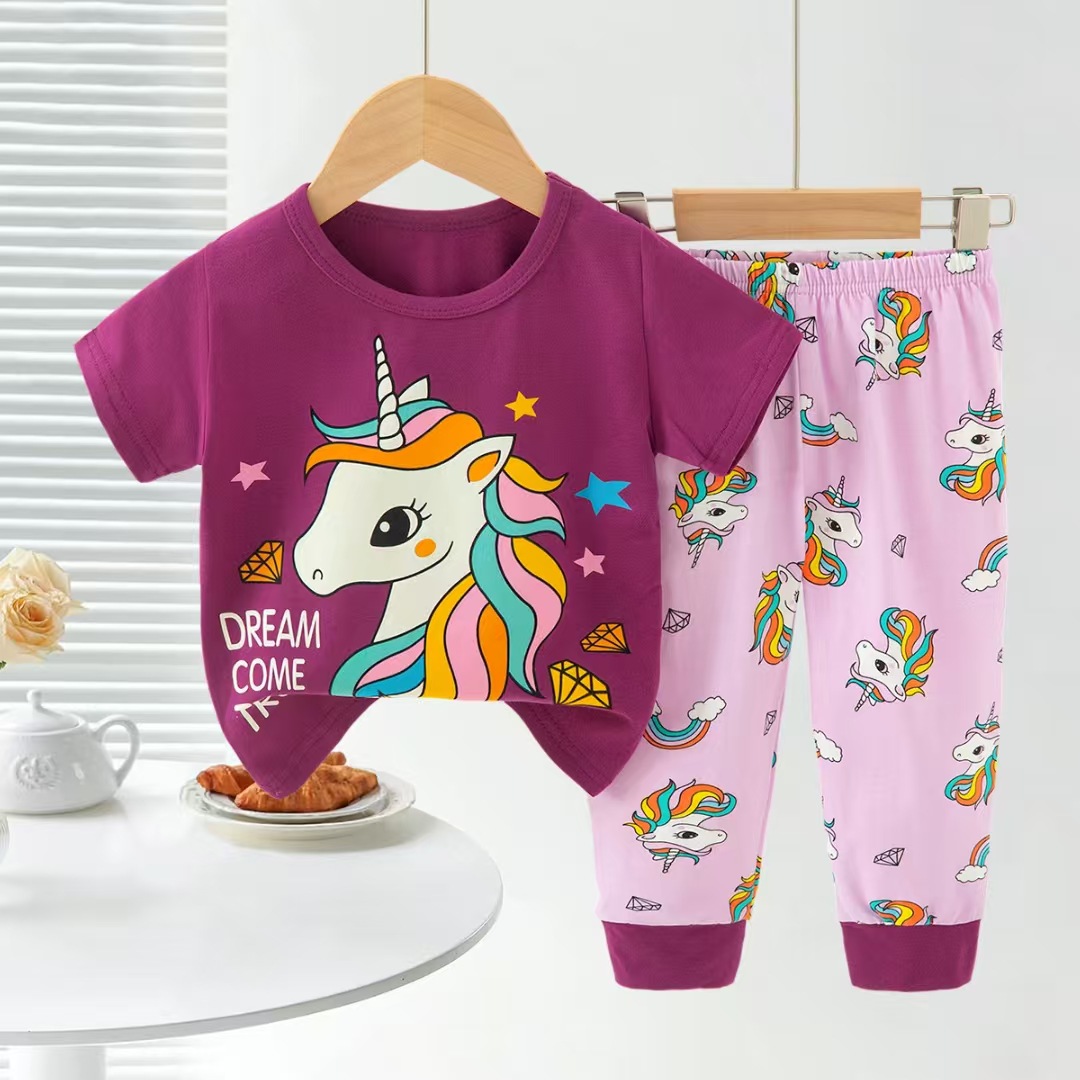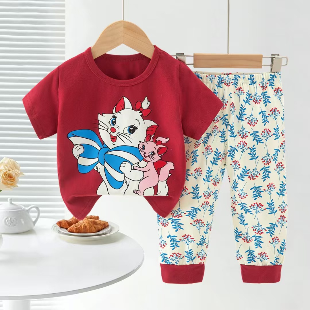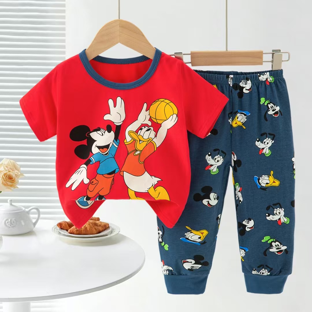 2025 아동복 어린이 잠옷 가을 짧은 소매 바지 소년 소녀 만화 홈 의류 세트 공장 직접 공급 한국판