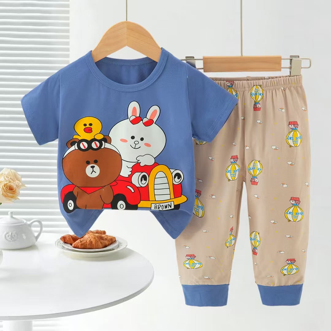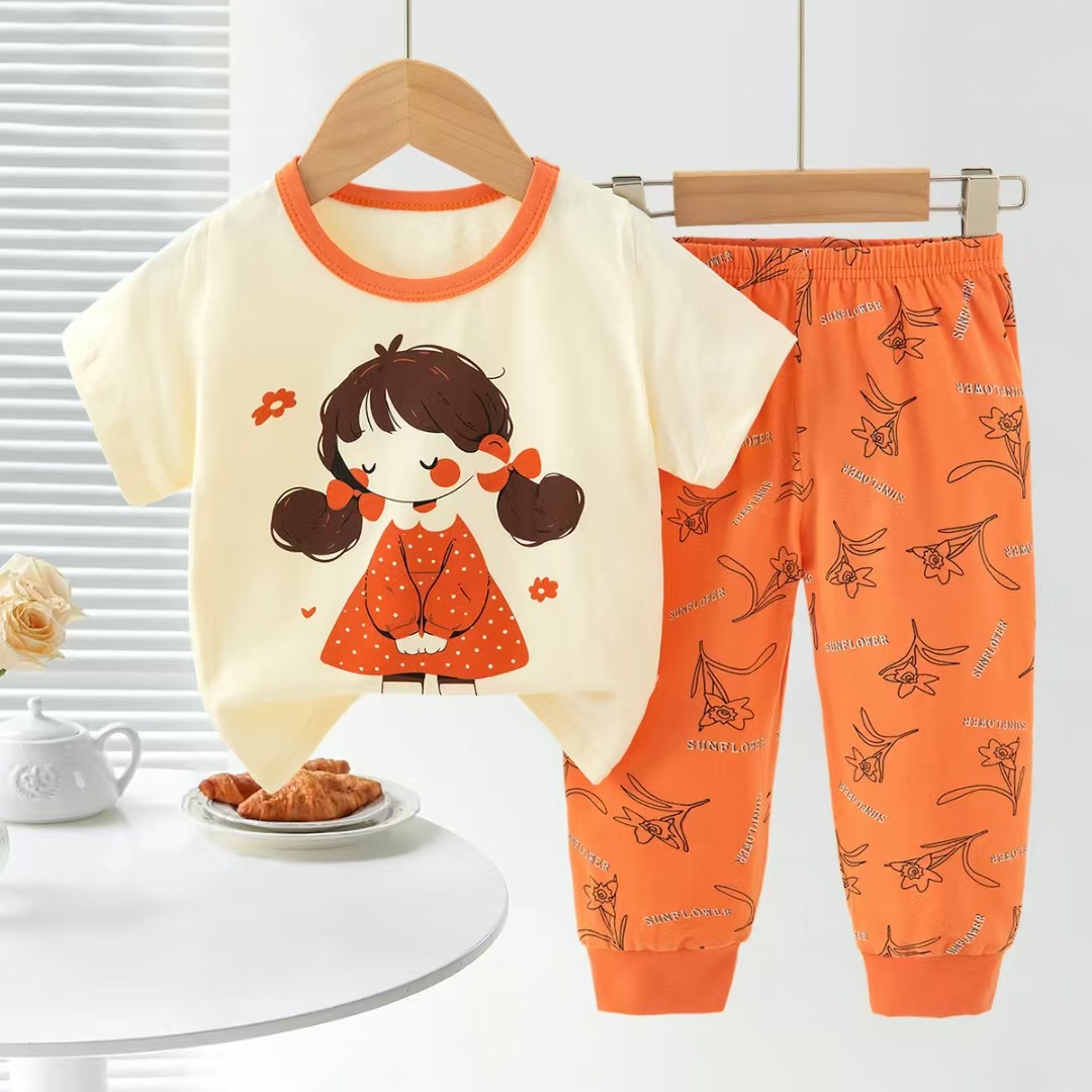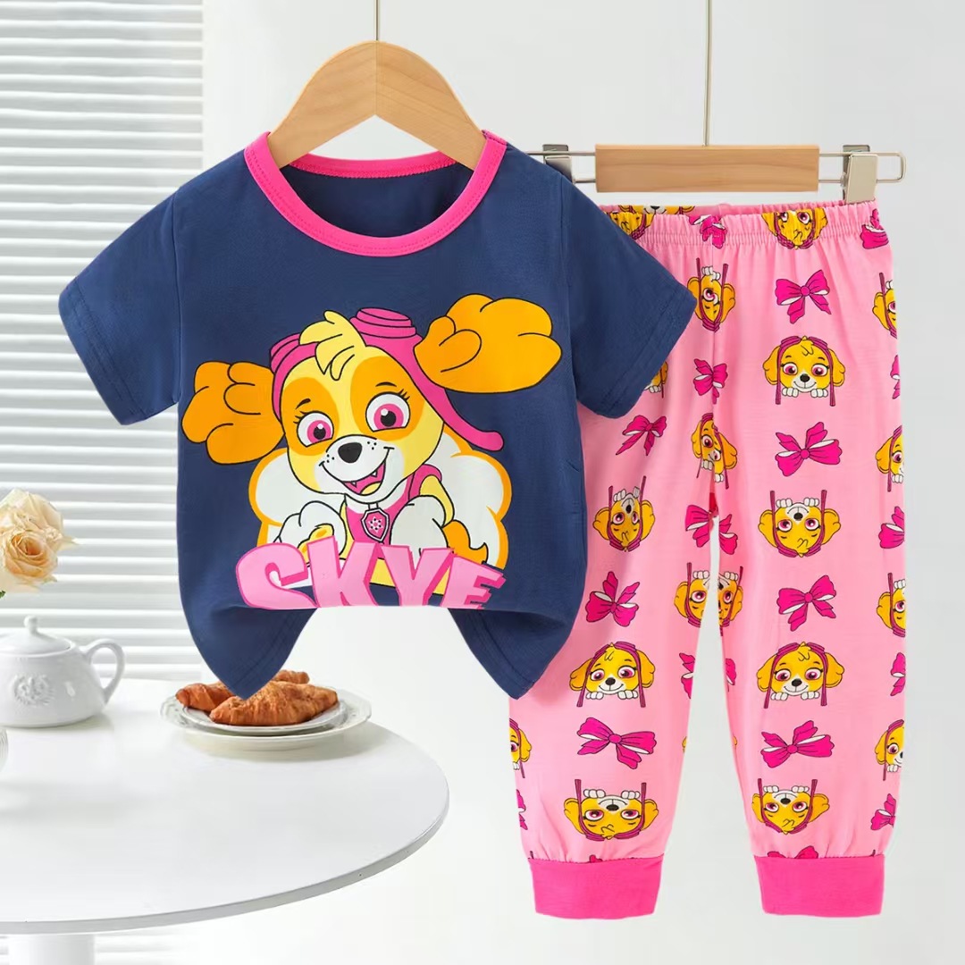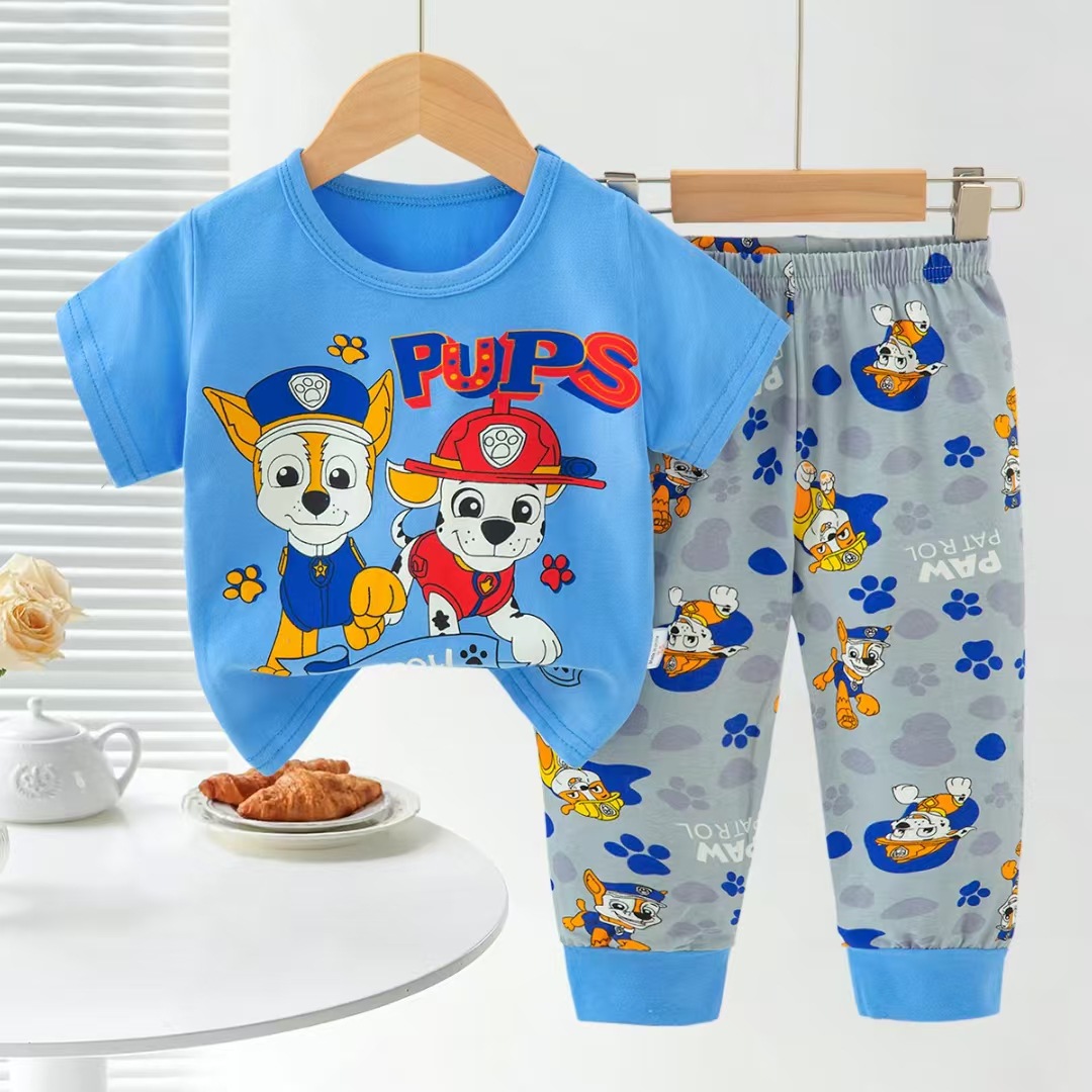 2025 아동복 어린이 잠옷 가을 짧은 소매 바지 소년 소녀 만화 홈 의류 세트 공장 직접 공급 한국판스토어 가기