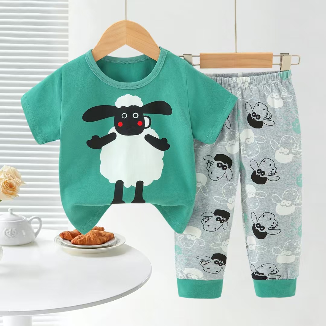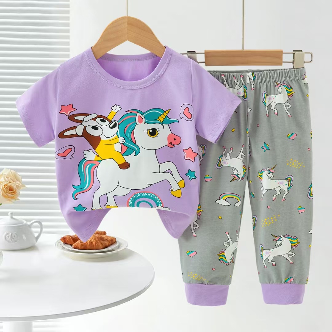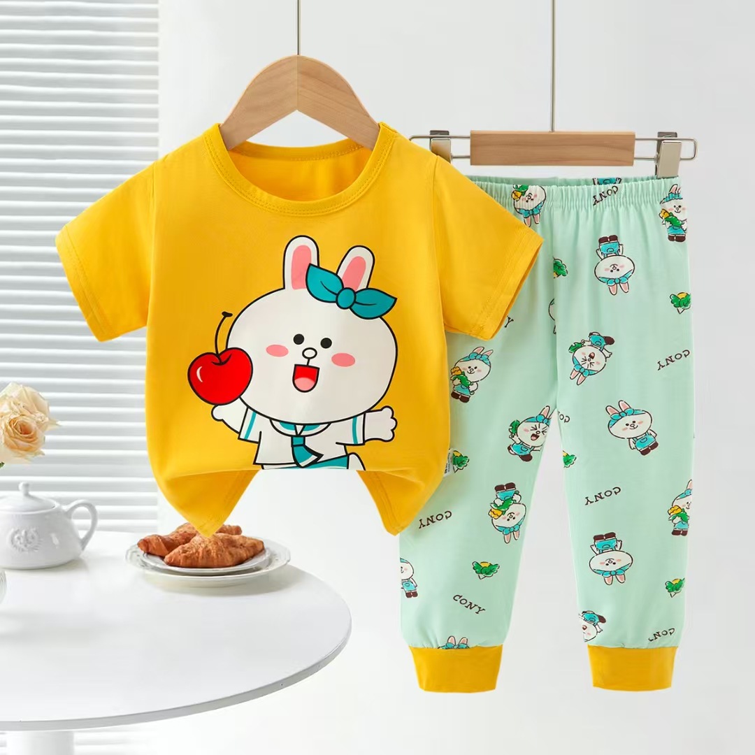 2025 아동복 어린이 잠옷 가을 짧은 소매 바지 소년 소녀 만화 홈 의류 세트 공장 직접 공급 한국판스토어 가기