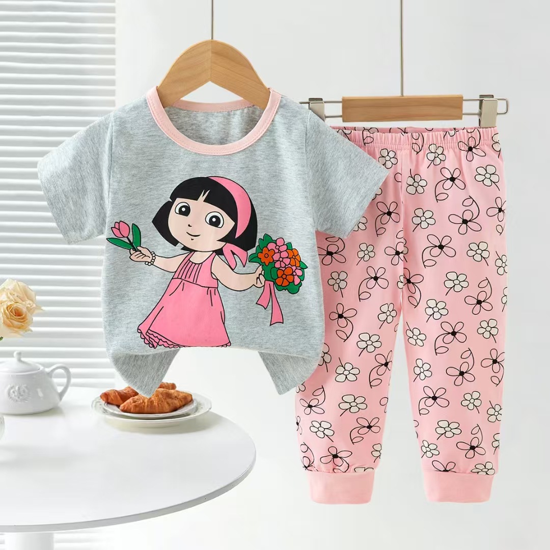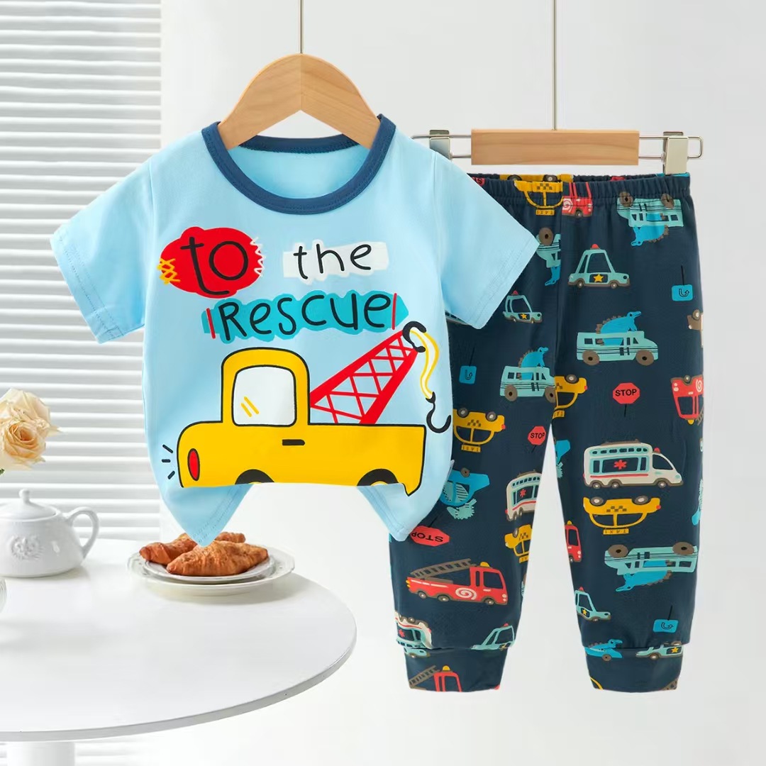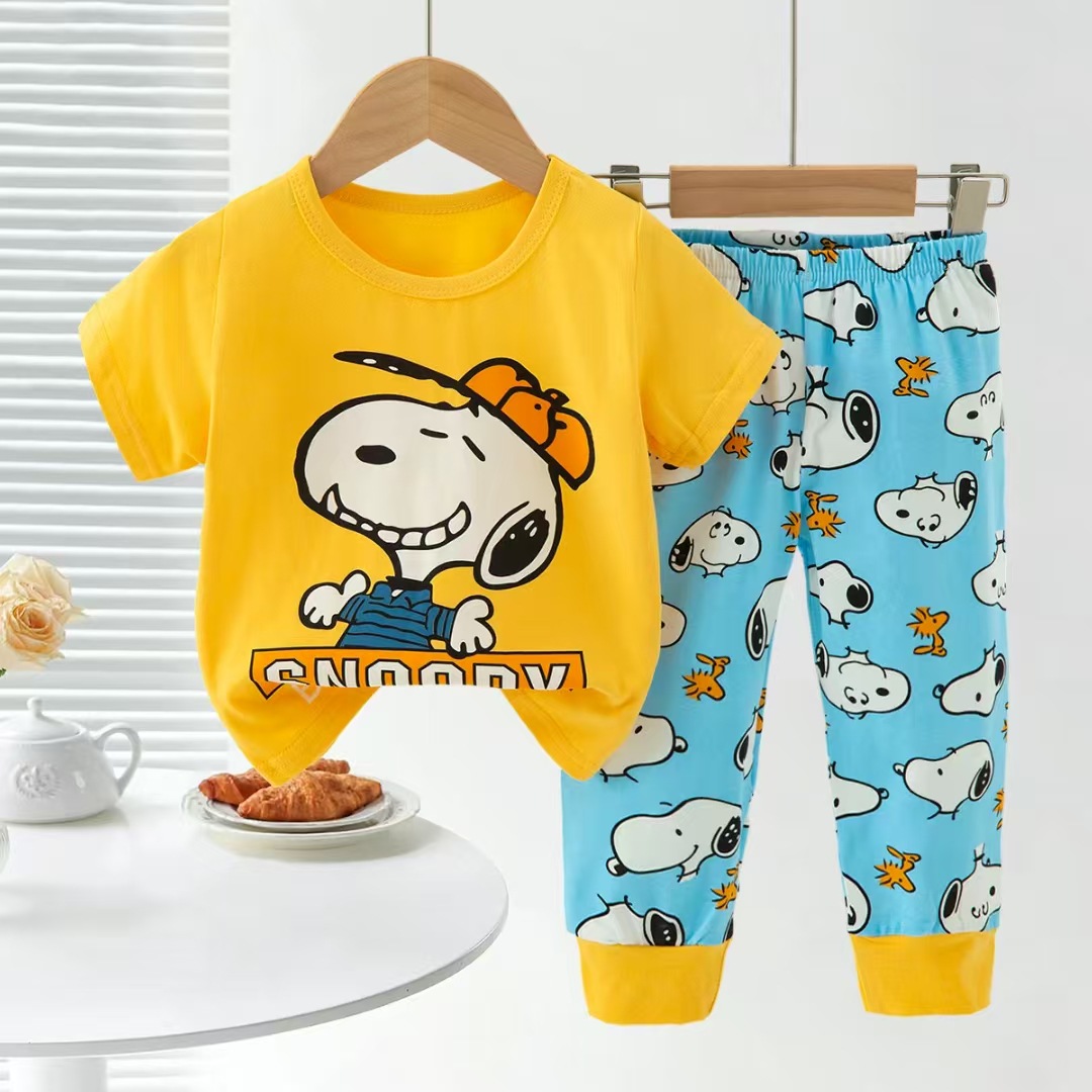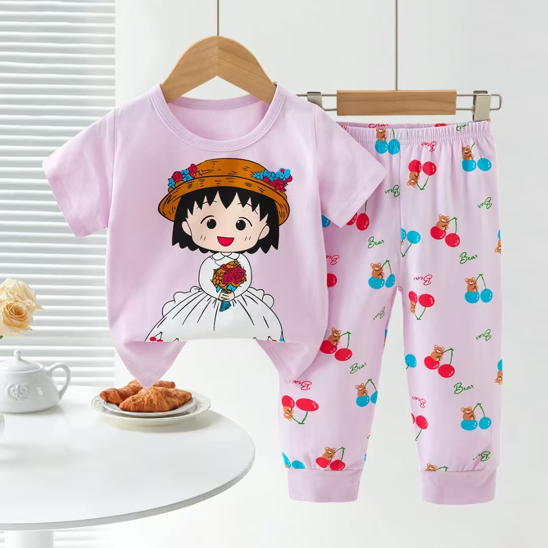 2025 아동복 어린이 잠옷 가을 짧은 소매 바지 소년 소녀 만화 홈 의류 세트 공장 직접 공급 한국판스토어 가기