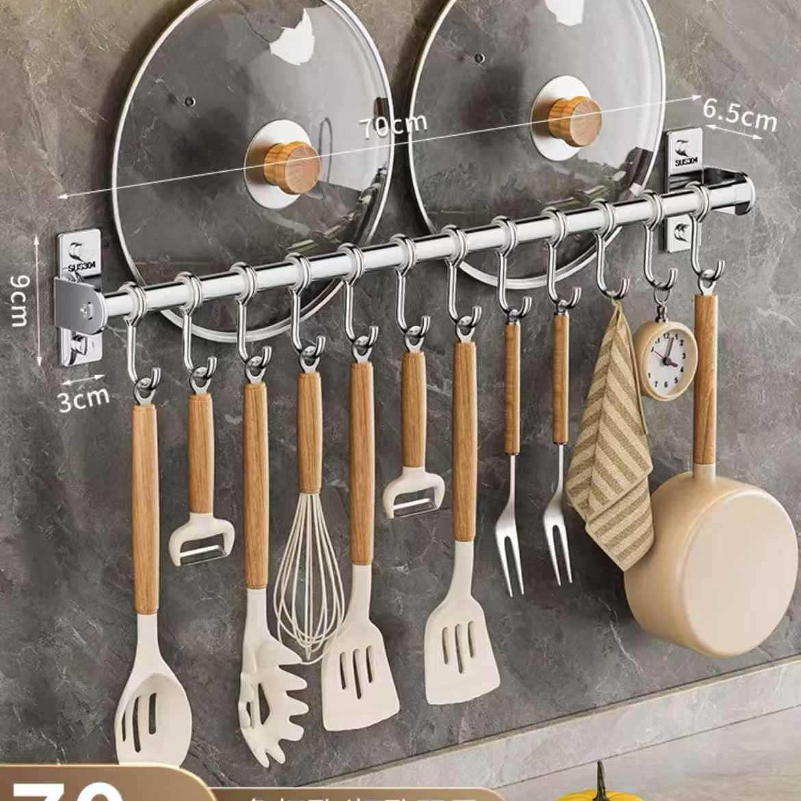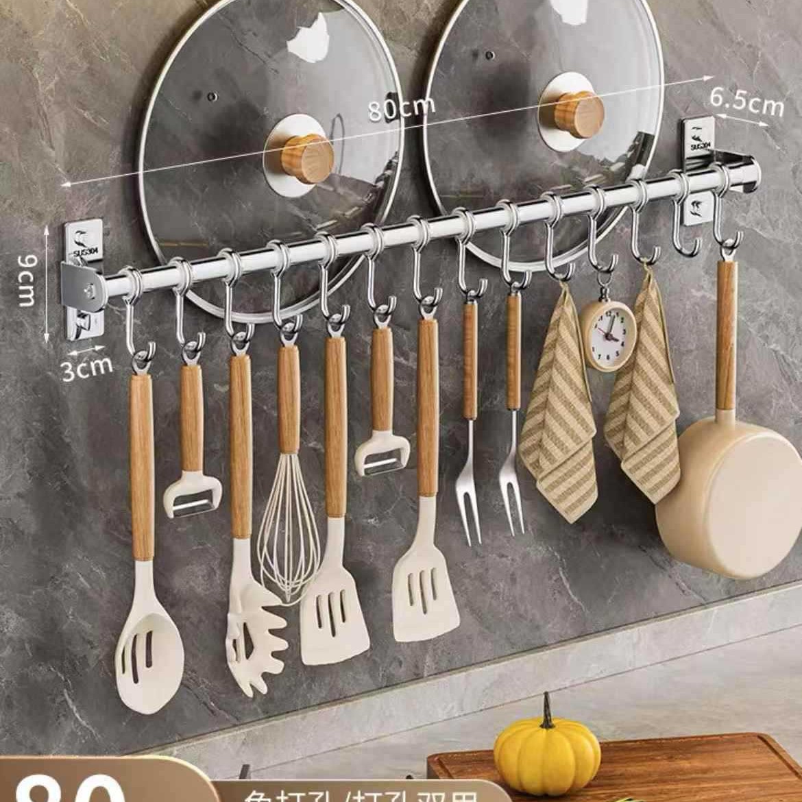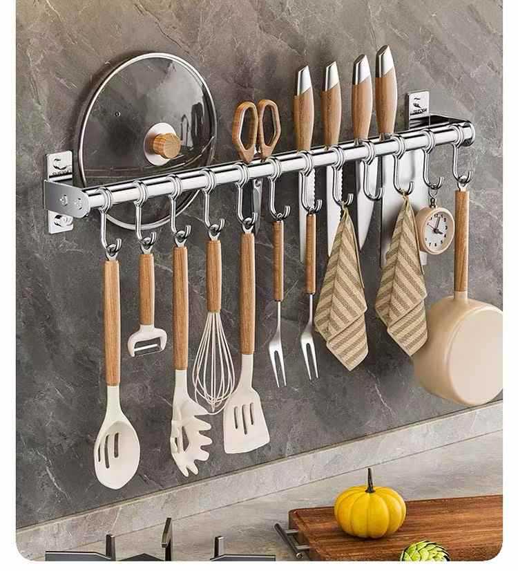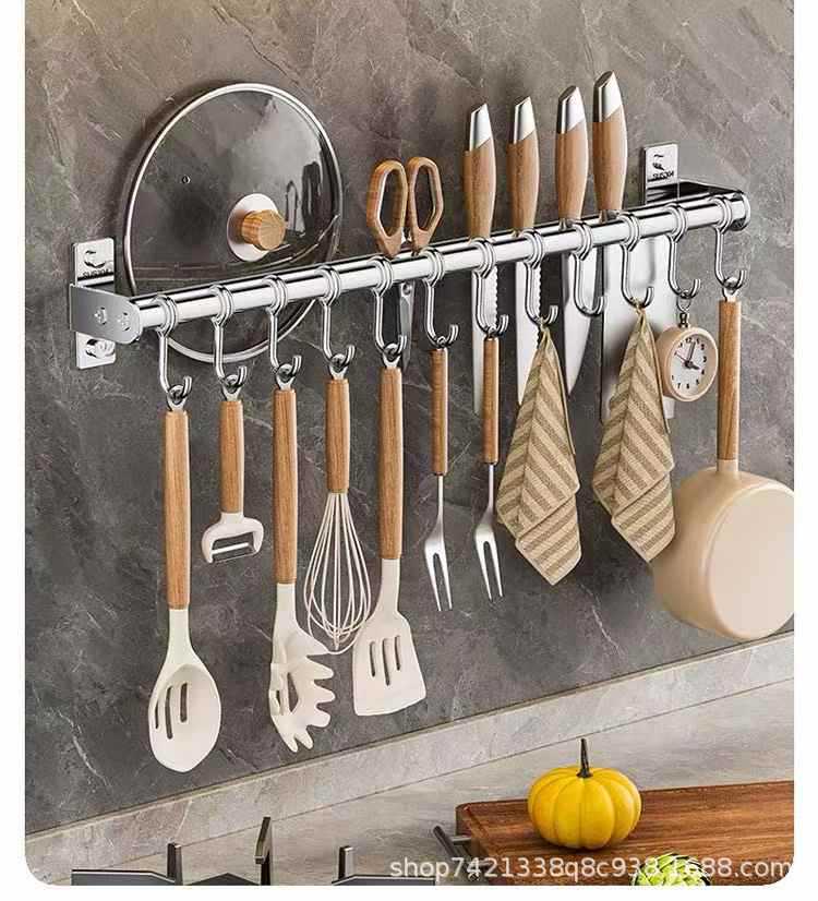 주방 비 펀치 다기능 회전 교수형 막대 가정용 주방용품 보관 랙 스푼 스페이드 두꺼운 후크 벽 장착