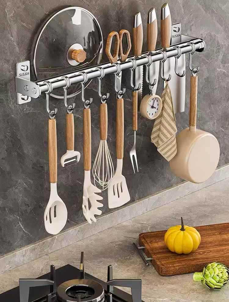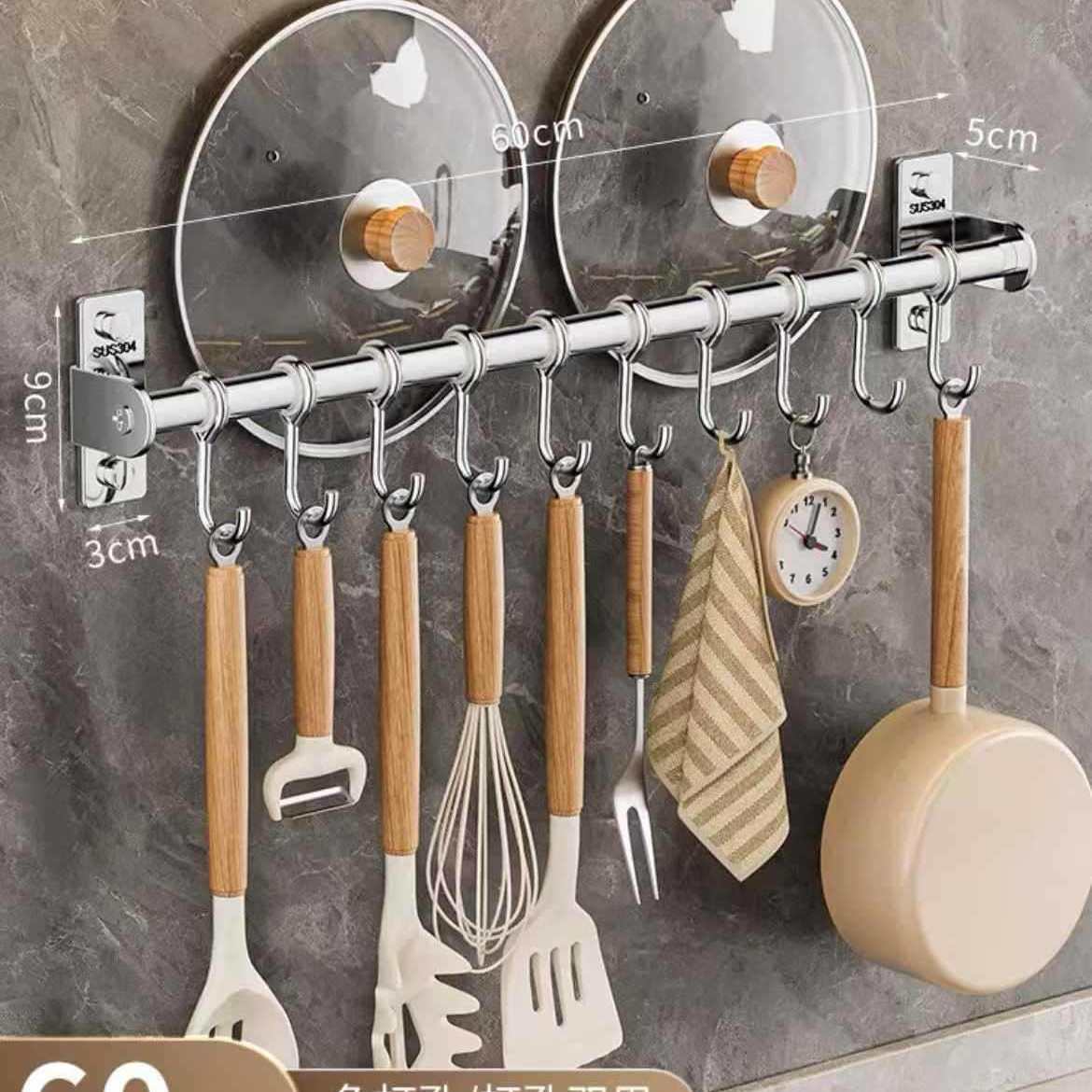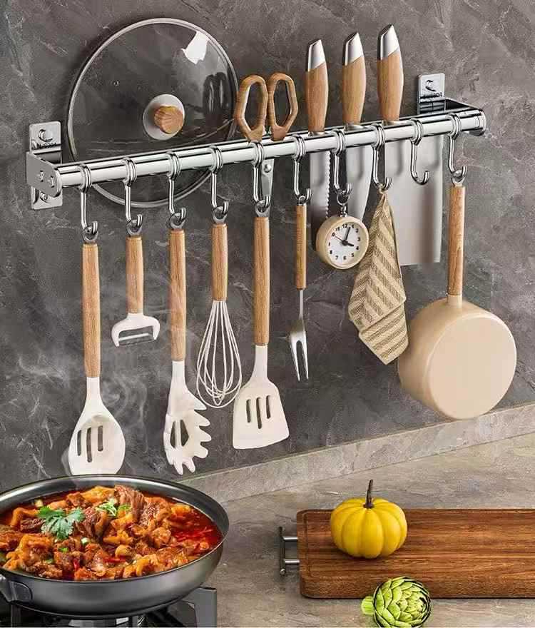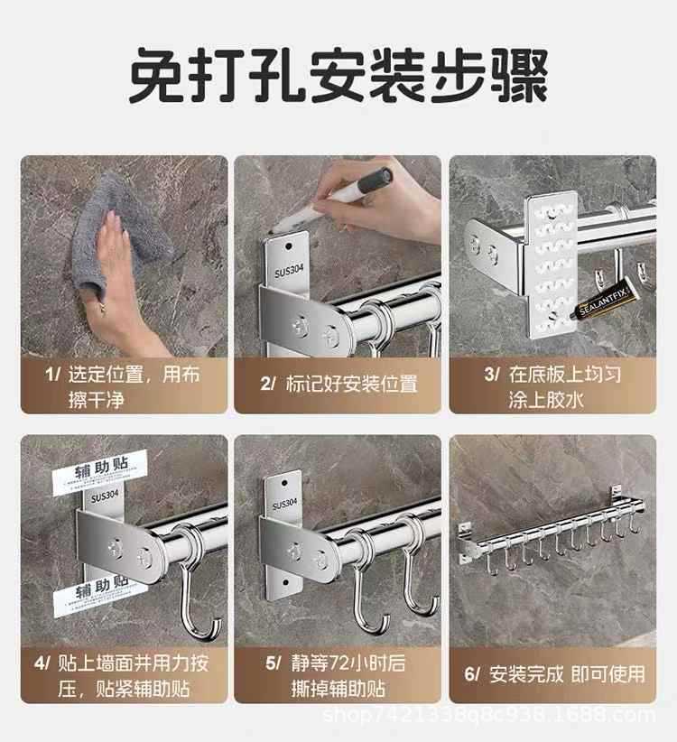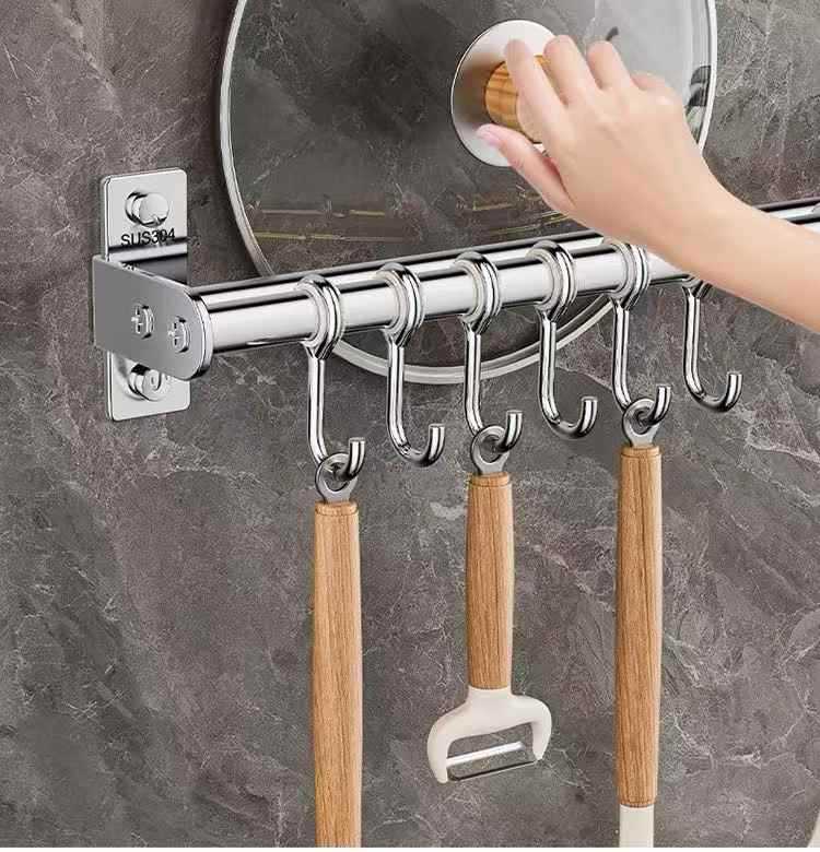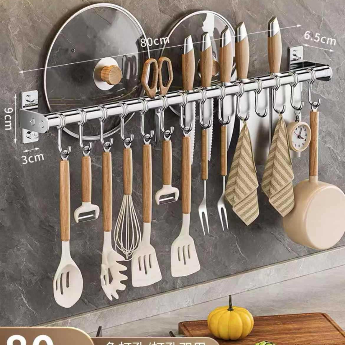 주방 비 펀치 다기능 회전 교수형 막대 가정용 주방용품 보관 랙 스푼 스페이드 두꺼운 후크 벽 장착