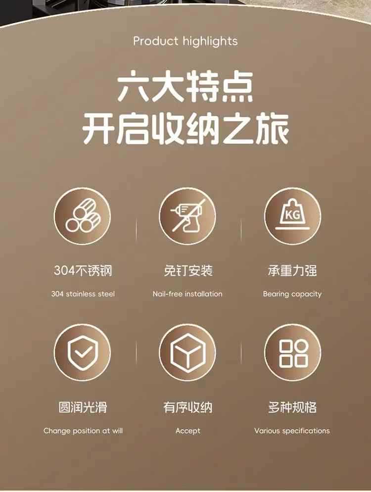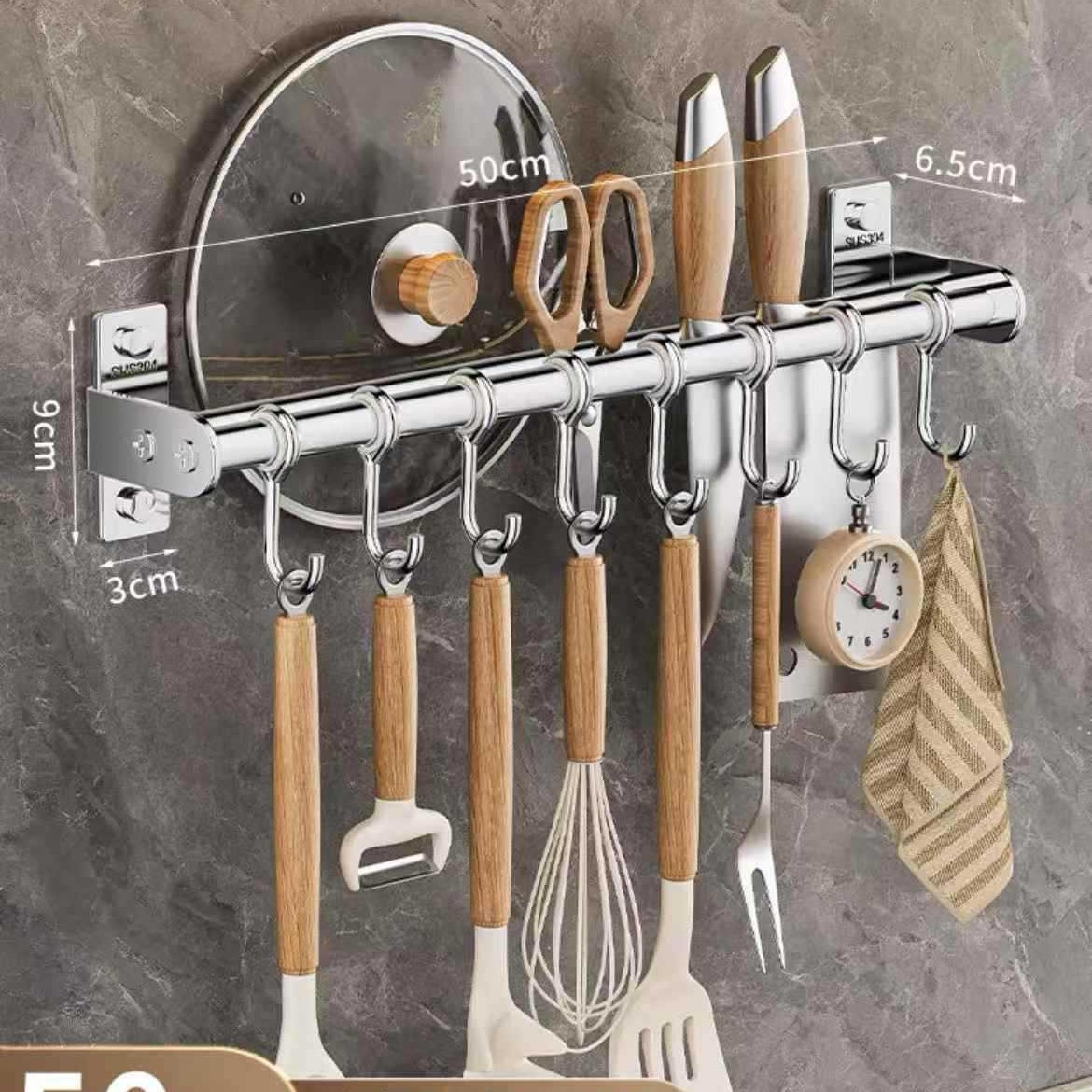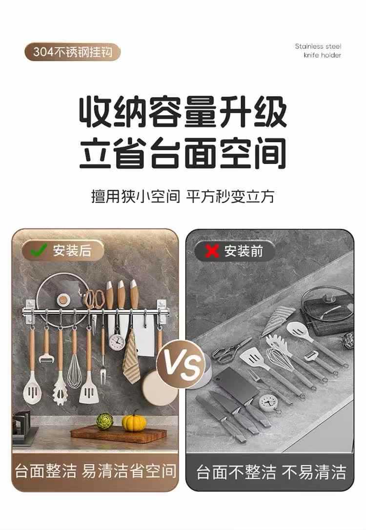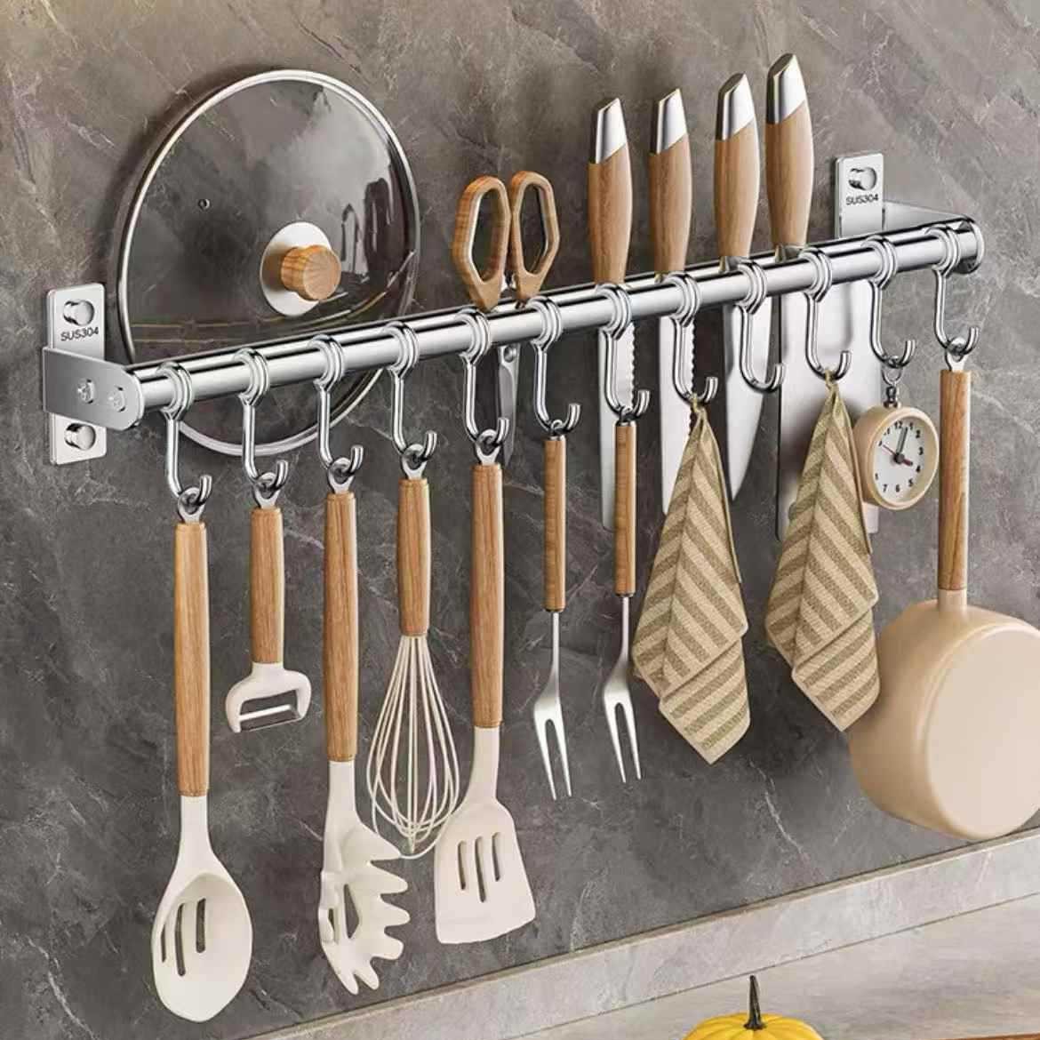 주방 비 펀치 다기능 회전 교수형 막대 가정용 주방용품 보관 랙 스푼 스페이드 두꺼운 후크 벽 장착