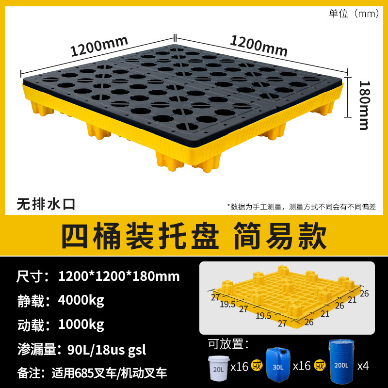 오일 드럼 누설 방지 팔레트 운송 누설 방지 팔레트 단일 2 4 배럴 누설 방지 플랫폼 지게차 카드 플라스틱